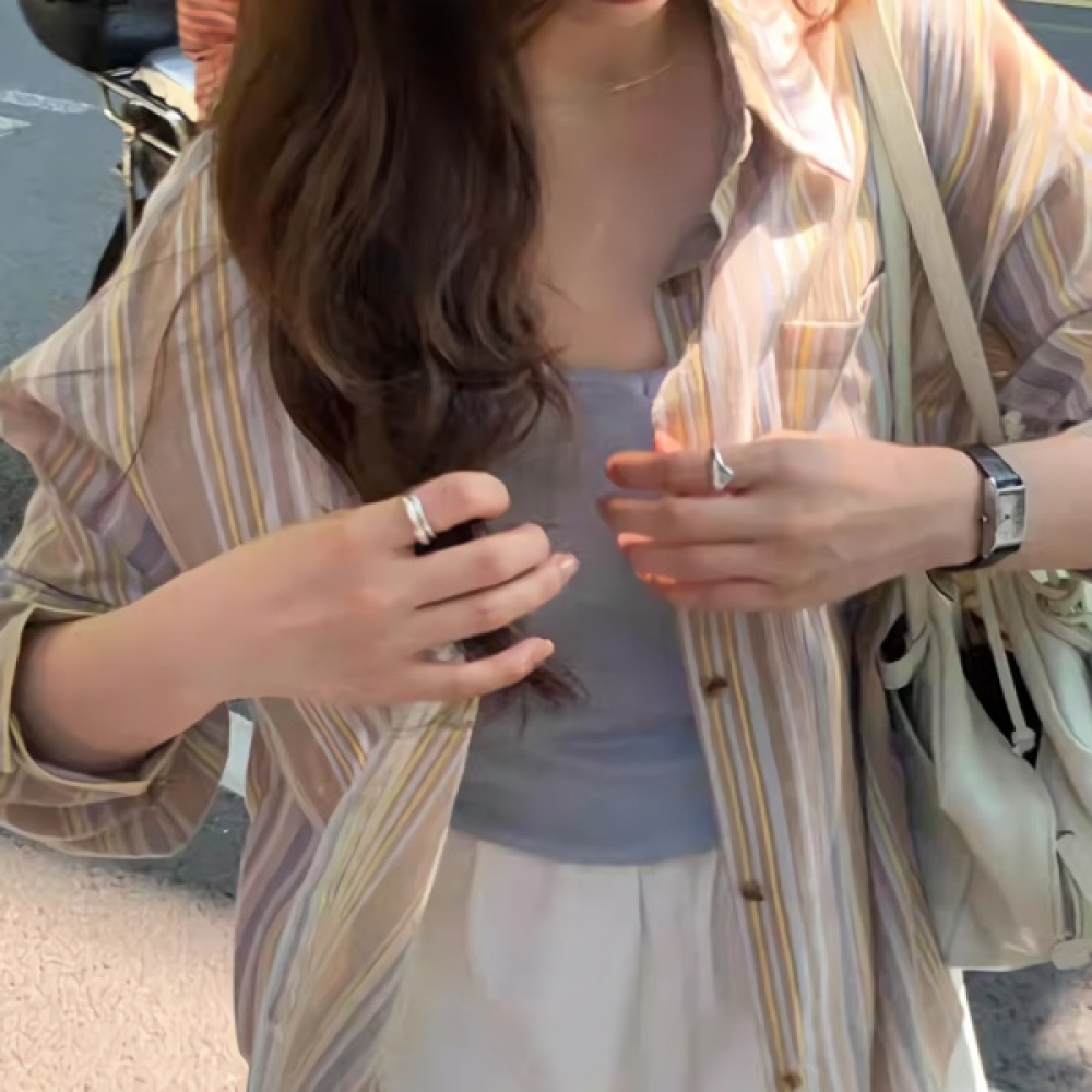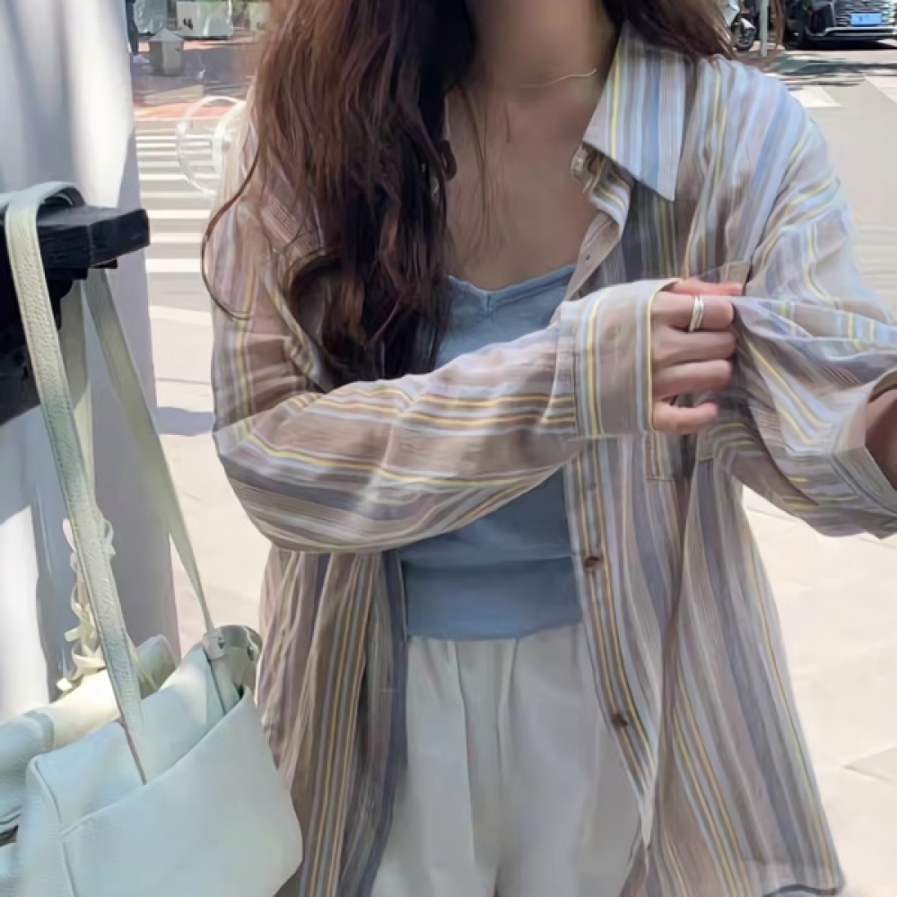 여성 가을 겨울 데일리 스트라이프 셔츠