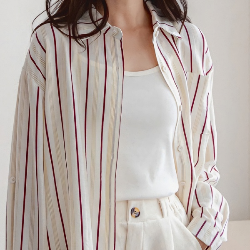 여성 스트라이프 롤업 베이직 남방 셔츠