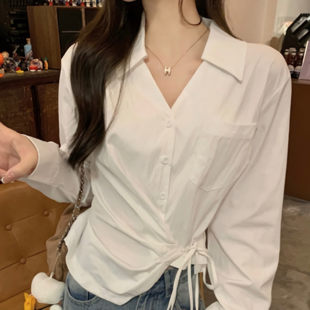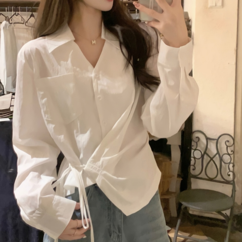 여성 가을 겨울 데일리 카라 언발 스트링 셔츠