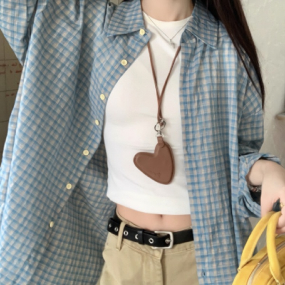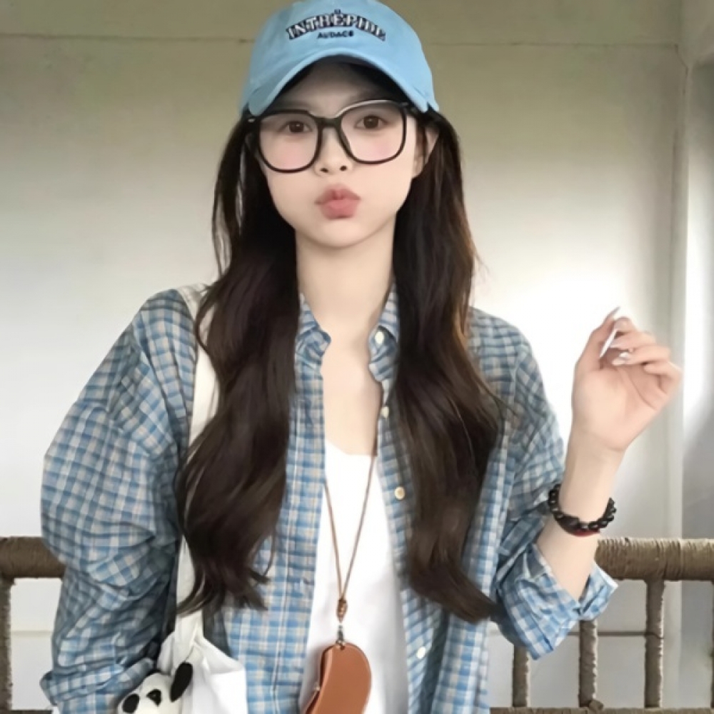 여성 가을 겨울 블루 체크 루즈핏 셔츠