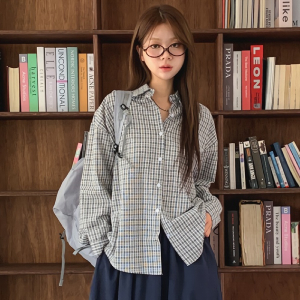 여성 가을 겨울 오버핏 긴팔 체크셔츠