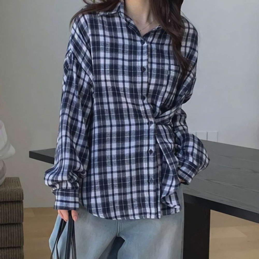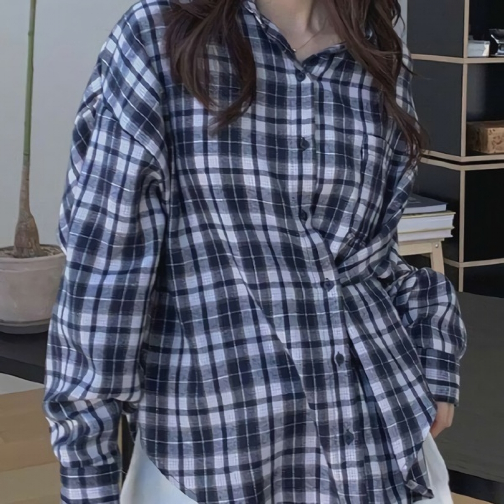 여성 가을 겨울 제피라 루즈핏 체크셔츠