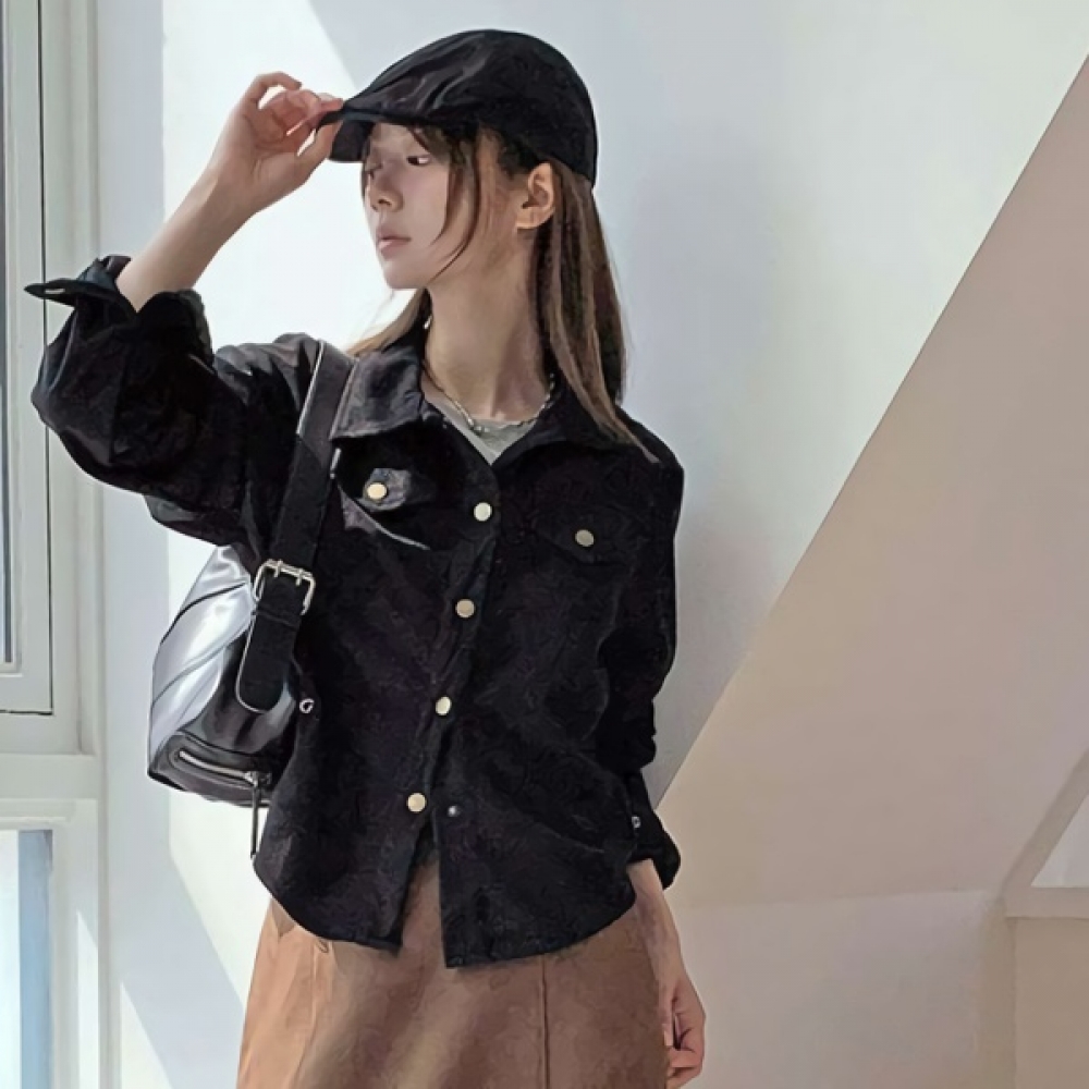 여성 투포켓 세미 크롭 슬림 골덴 셔츠