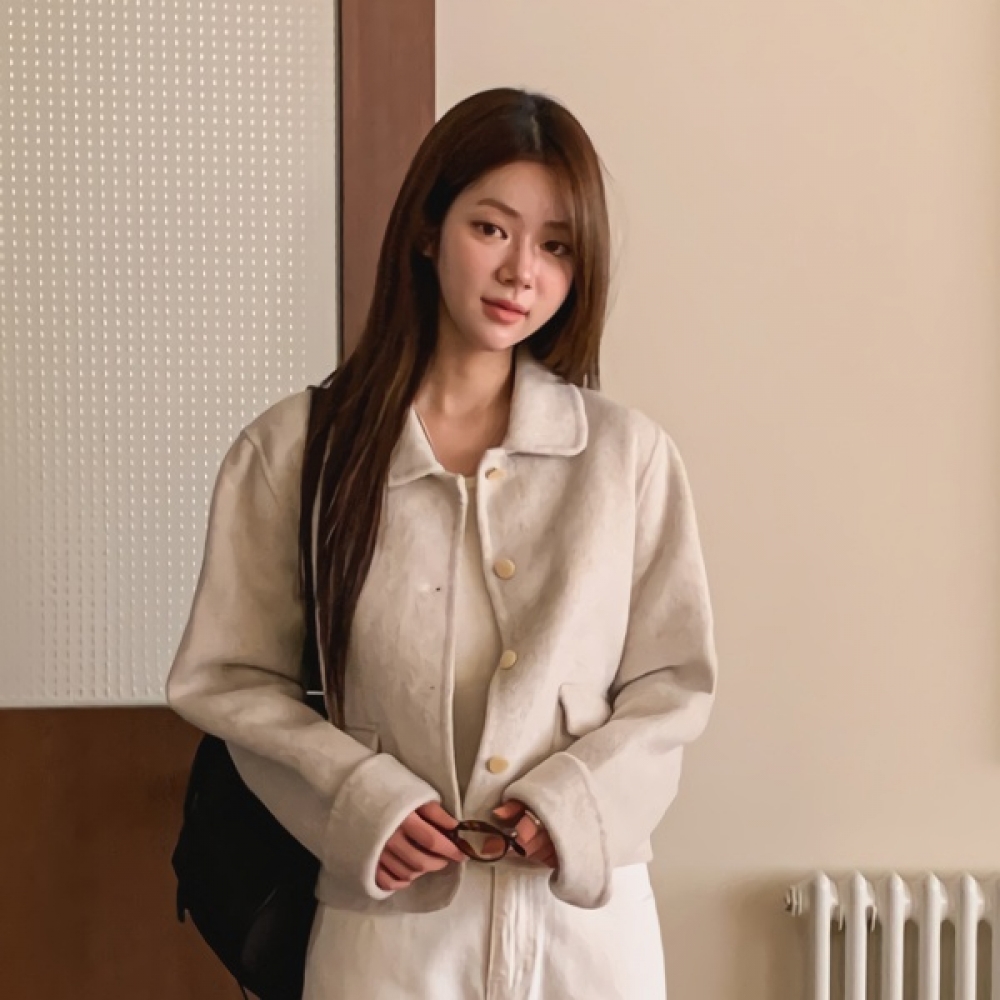 여성 핸드메이드 포켓 울 카라 숏코트