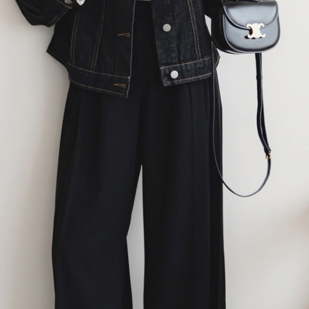여성 링닝 맞주름 핀턱 세미와이드 슬랙스 팬츠