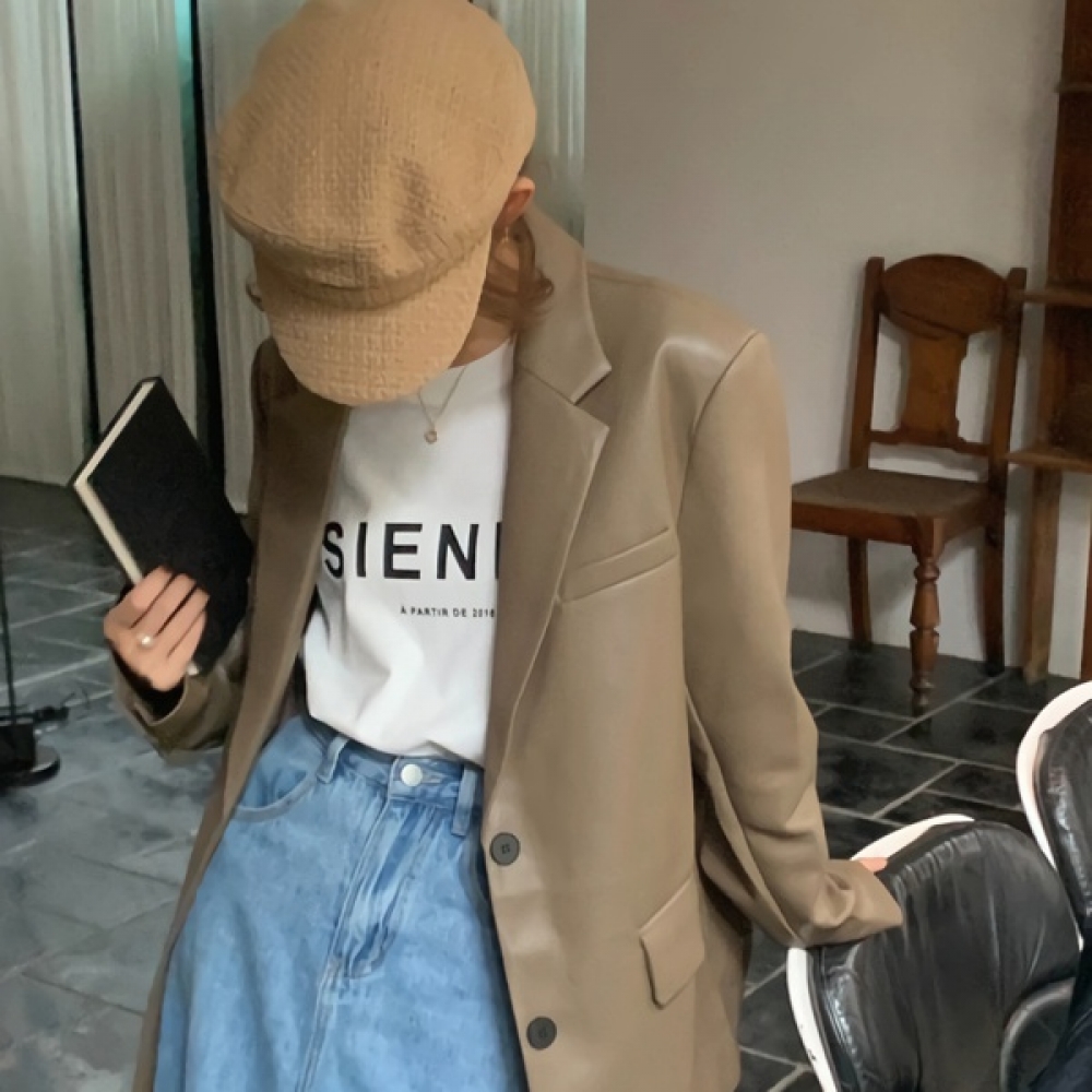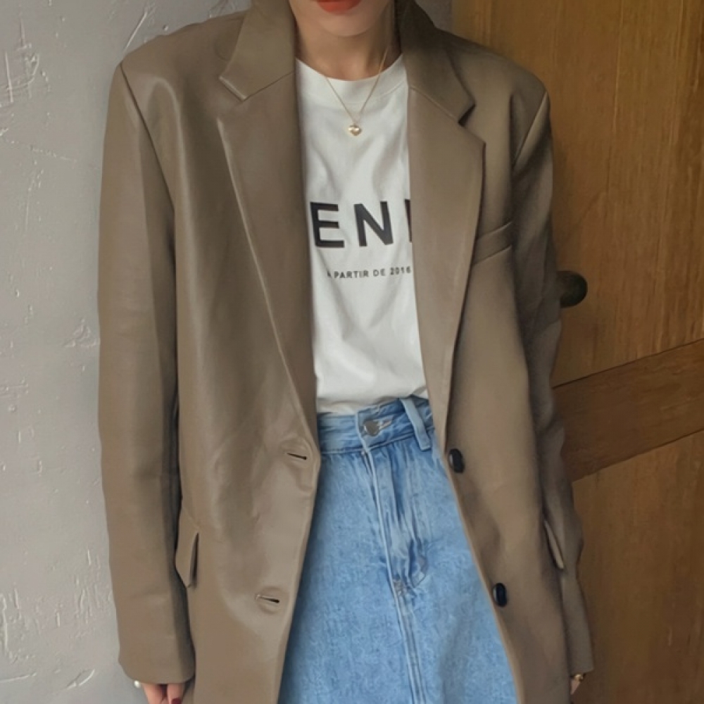 여성 가을 겨울 데일리 레더 루즈핏 자켓