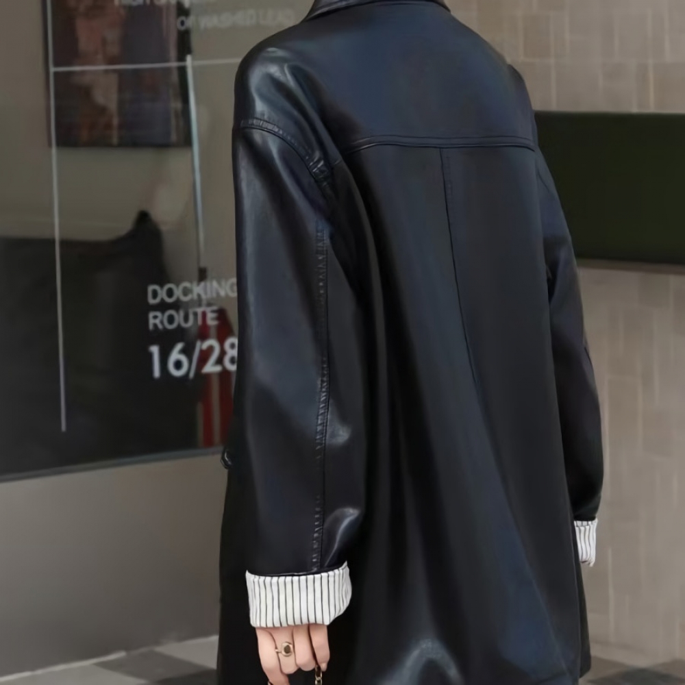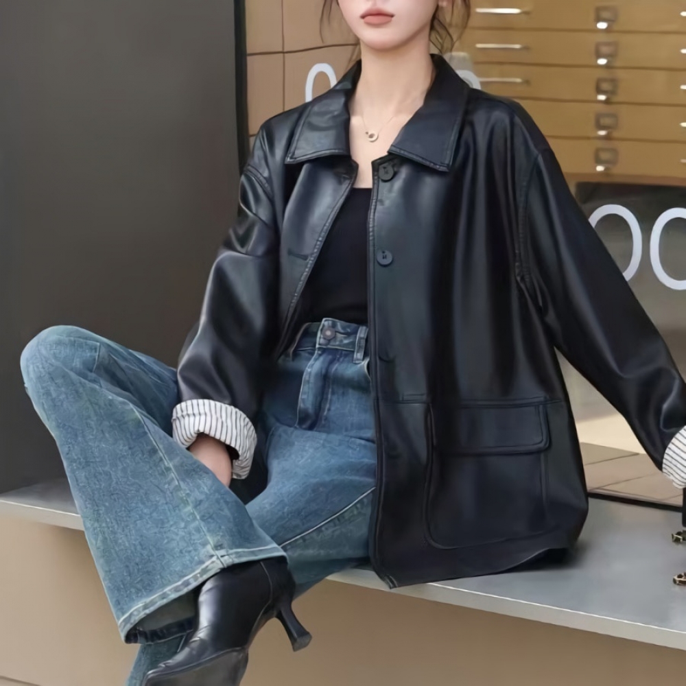 여성 가을 겨울 오버핏 하프 레더 자켓