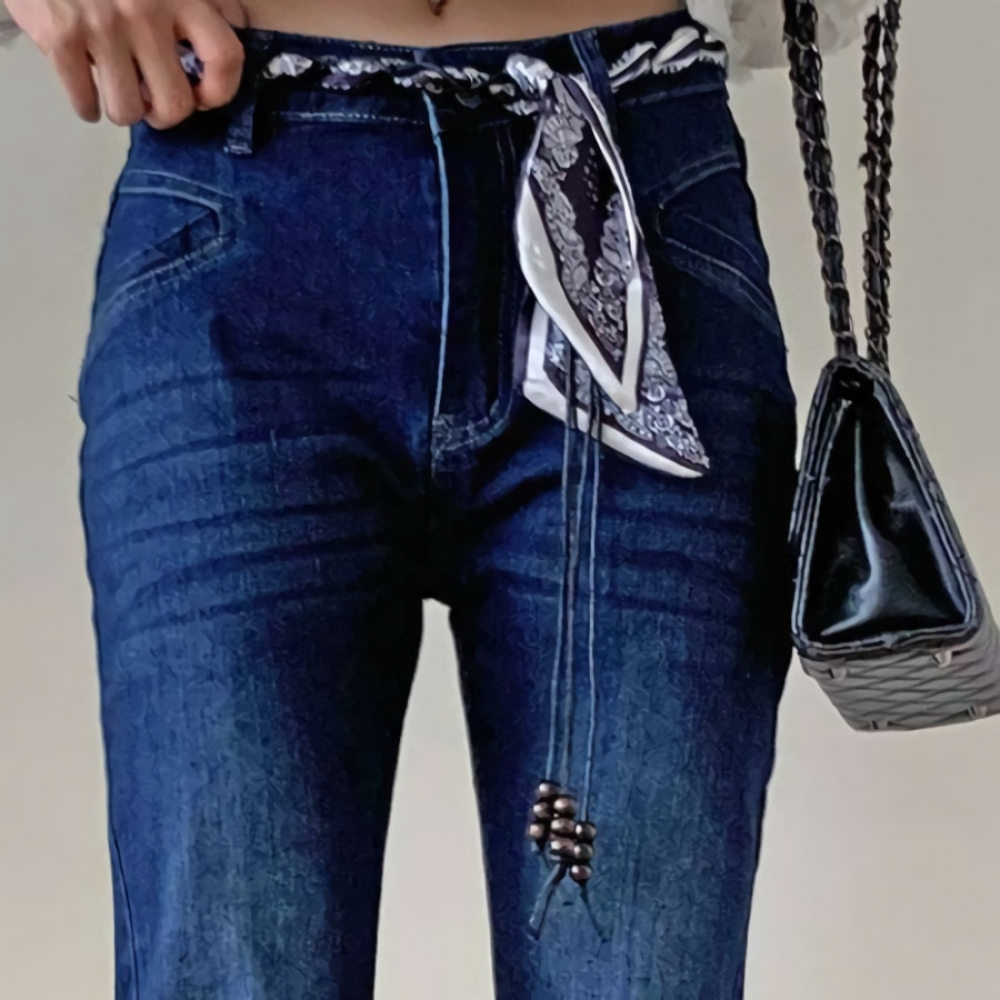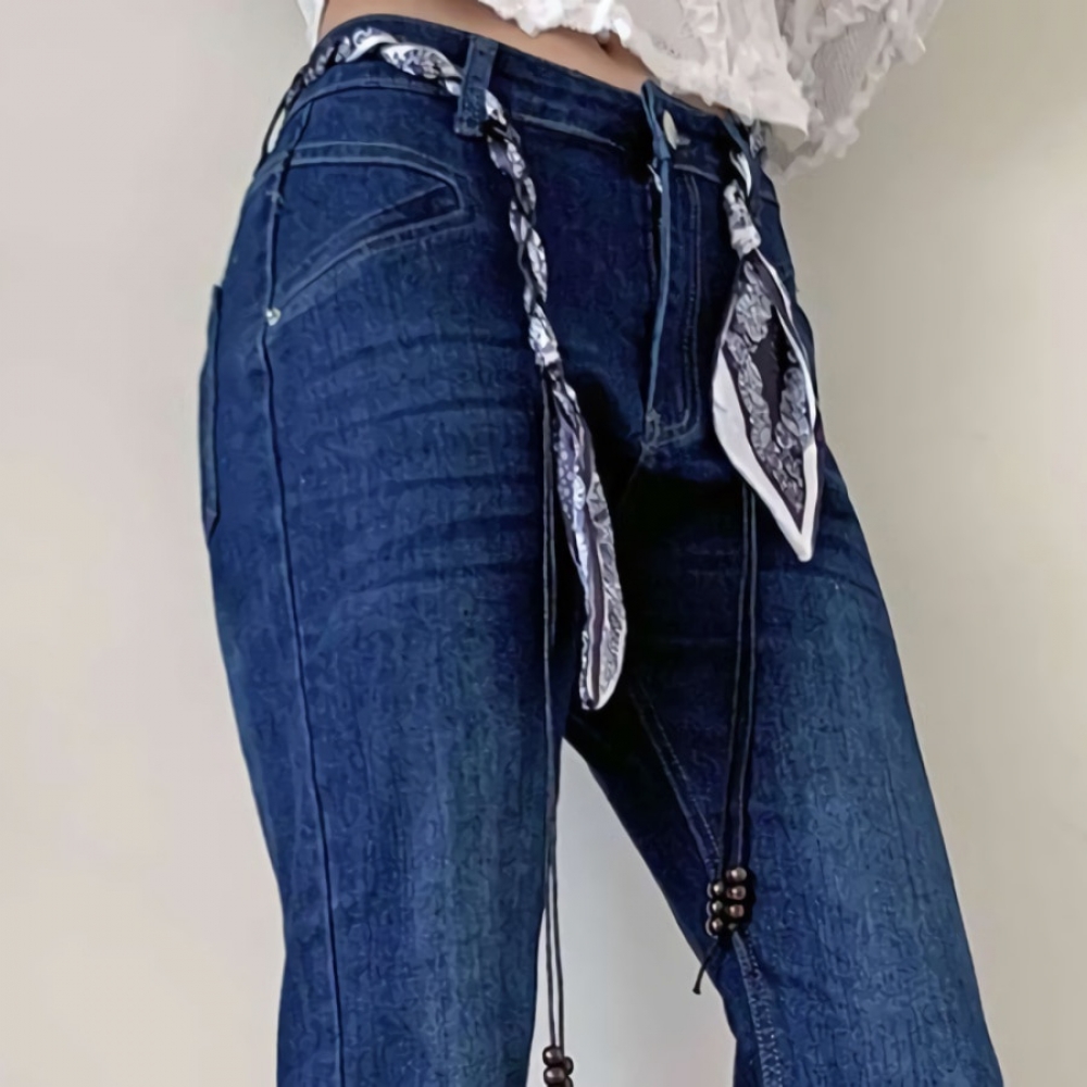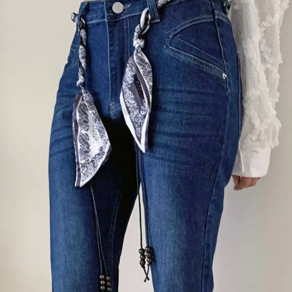 여성 반다나 벨트 세트 세미 부츠컷 데님 팬츠