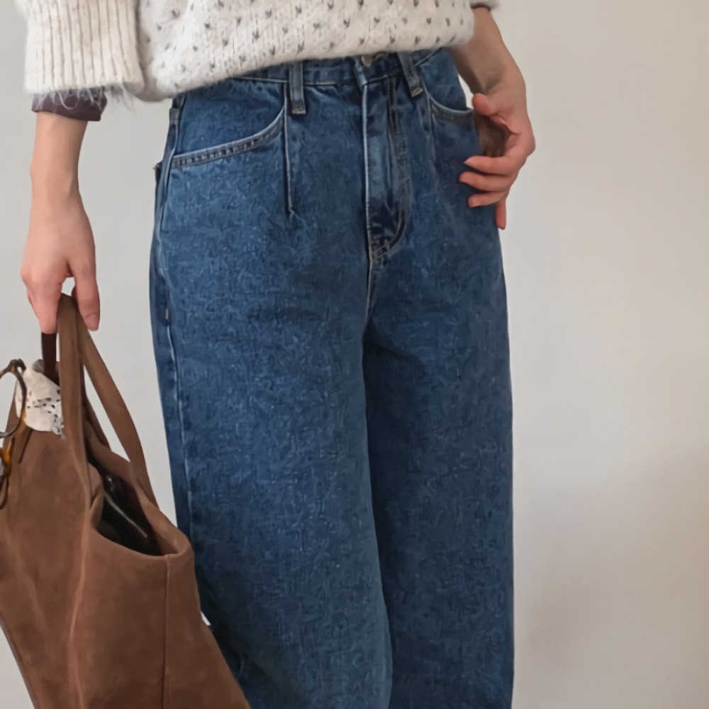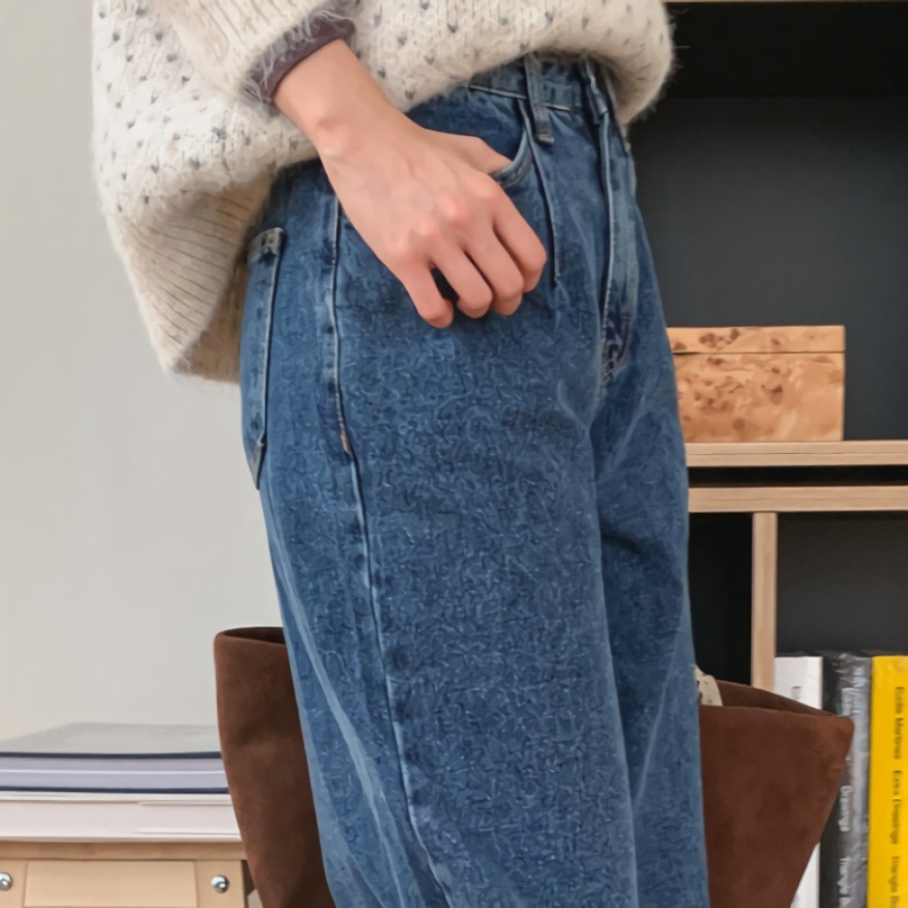 여성 핀턱 포인트 와이드 일자 데님 팬츠