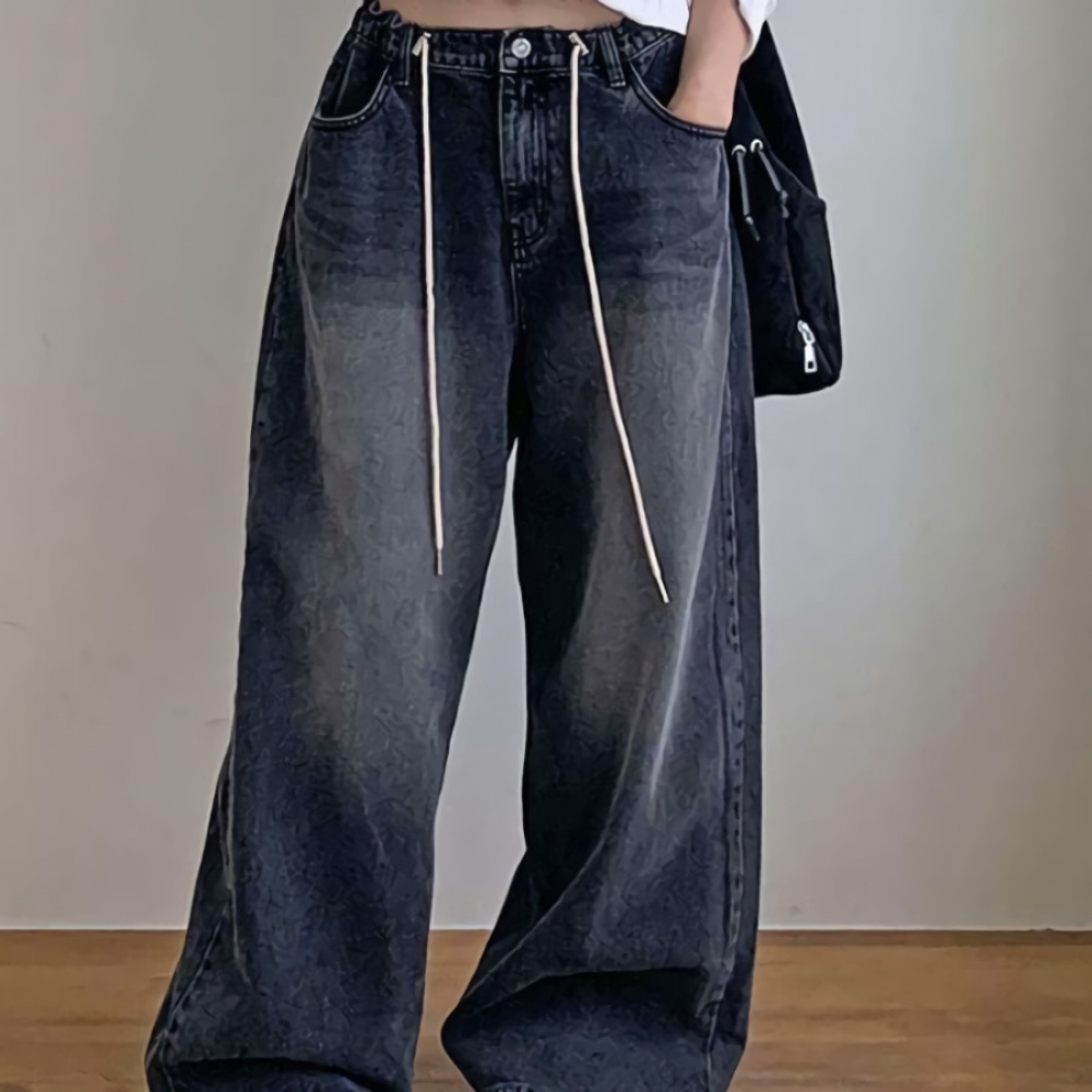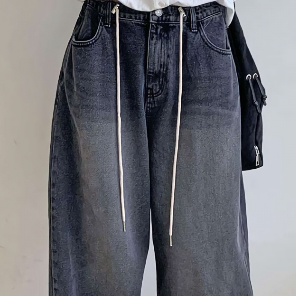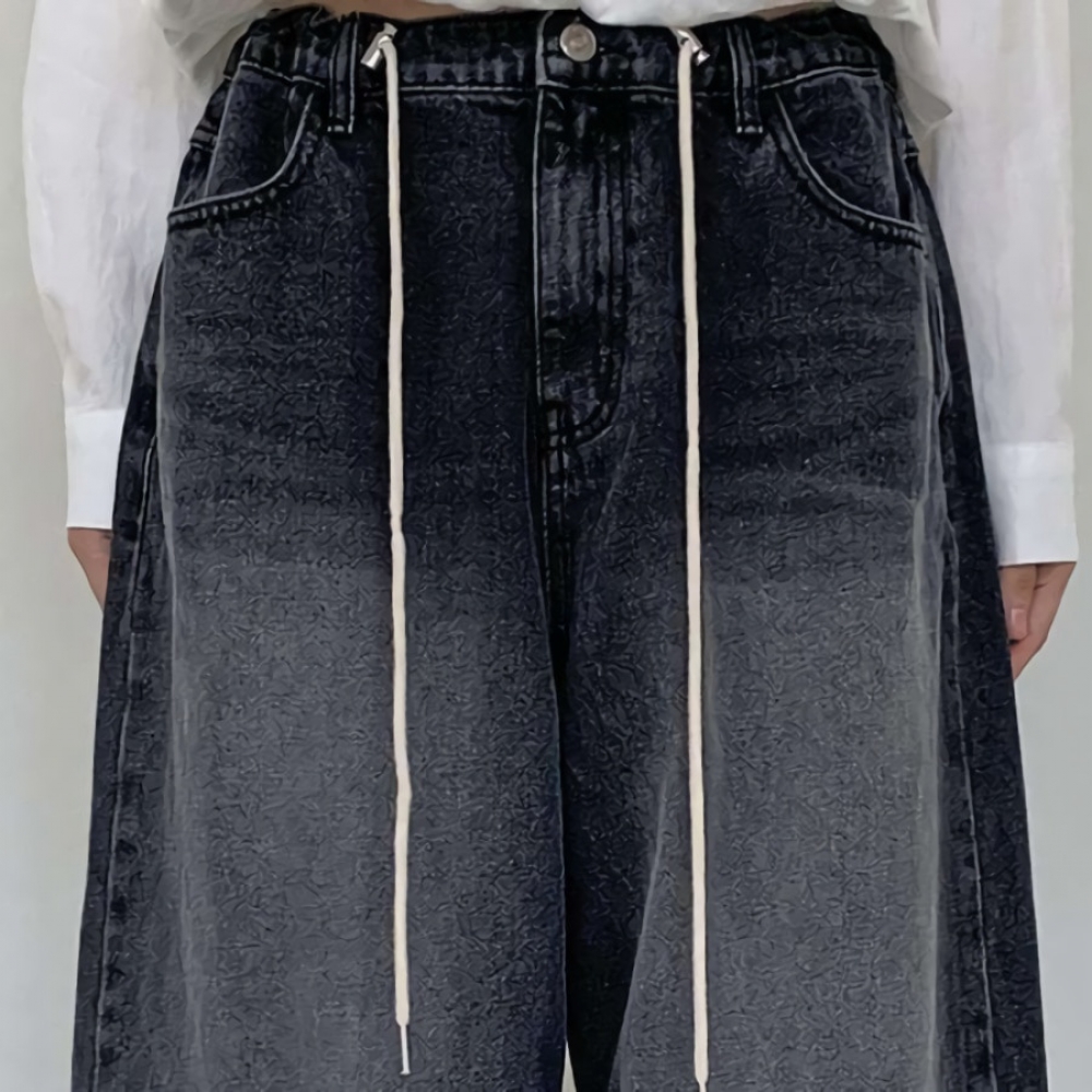 여성 사이드 절개 라인 와이드 데님 팬츠