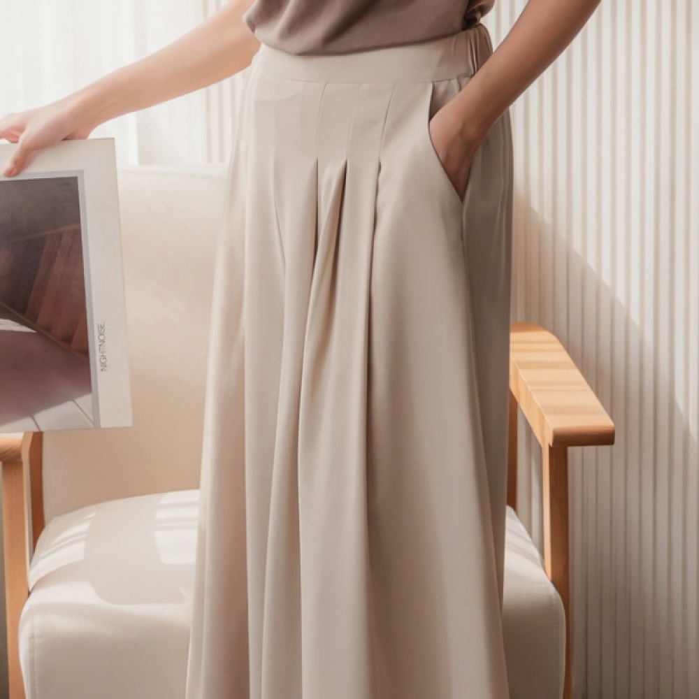 여성 겨울 미션 플리츠 밴딩 와이드 팬츠
