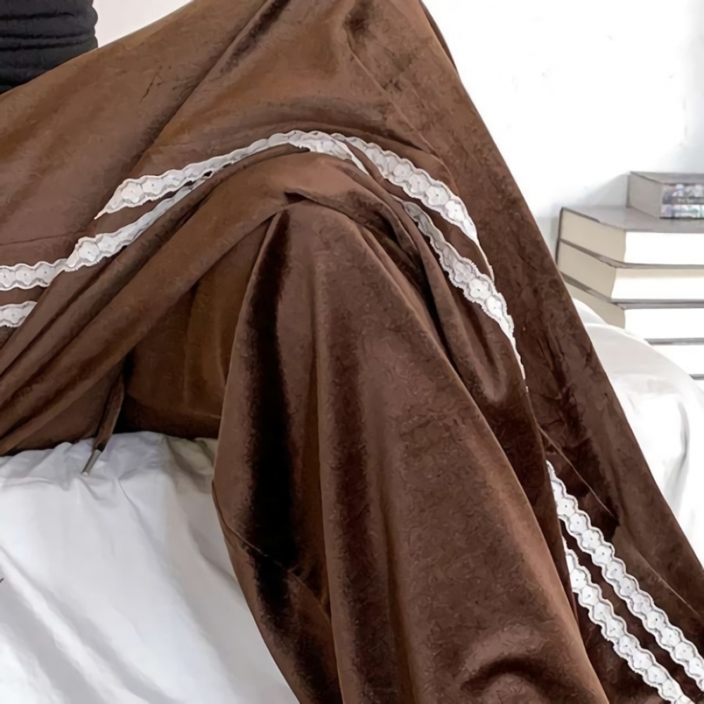 여성 겨울 레이스 라인 밴딩 벨벳 팬츠