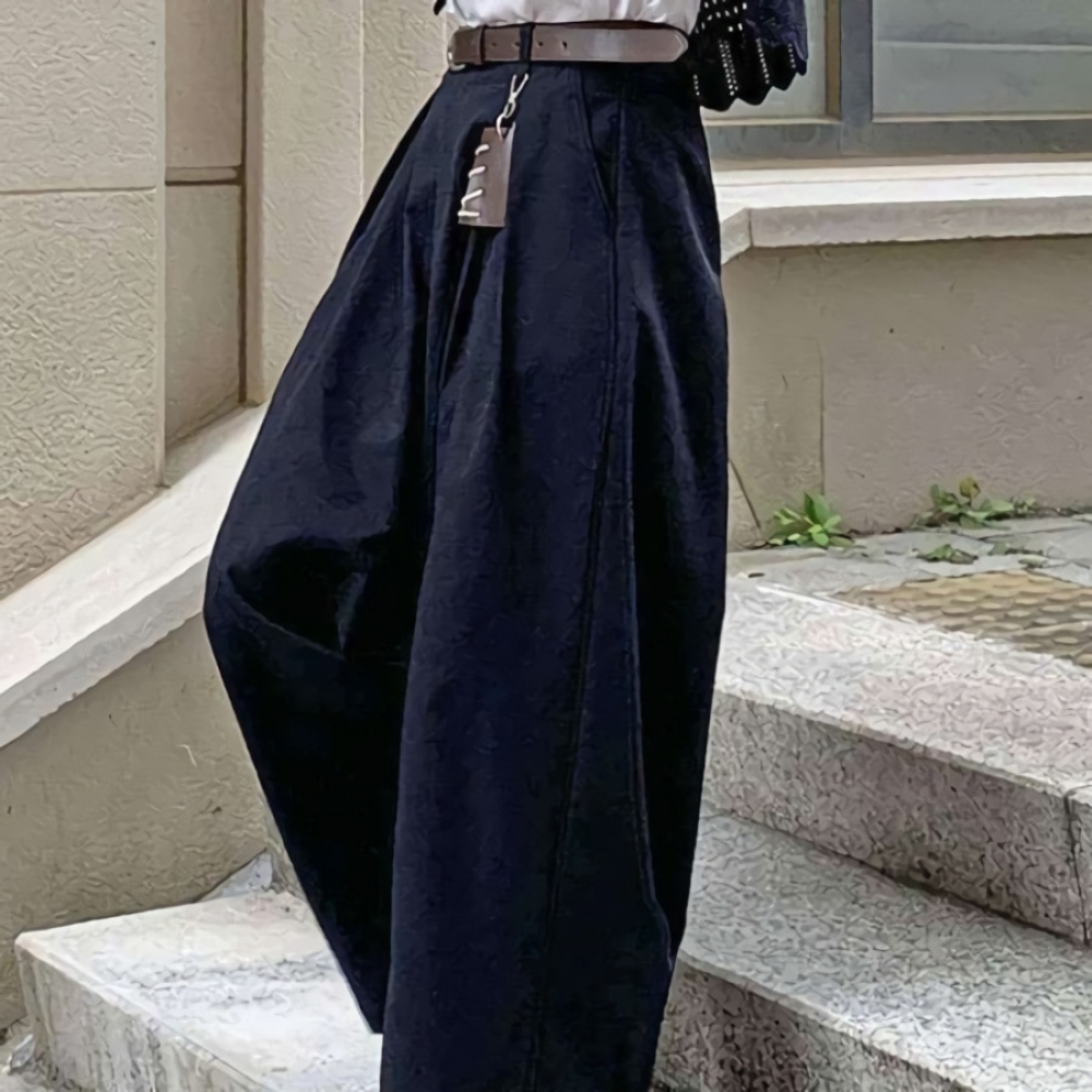 여성 키링 벨트 세트 핀턱 빅 와이드 팬츠