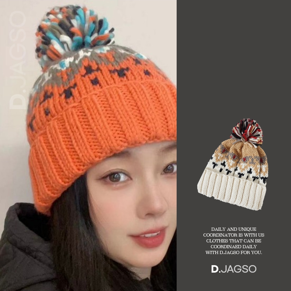 여성 방한 겨울 니트 눈꽃 털 방울 비니 모자