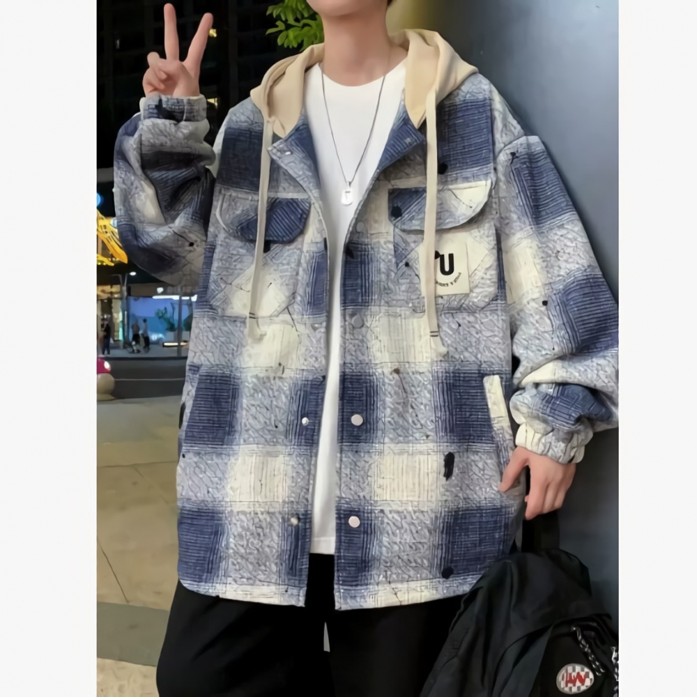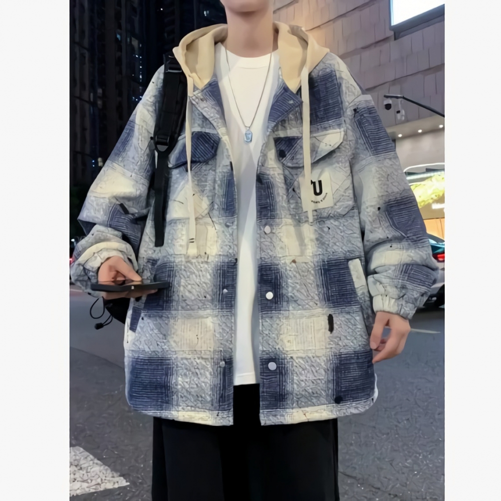 남성 겨울 체크 코트 후드 빅사이즈 캐주얼 재킷