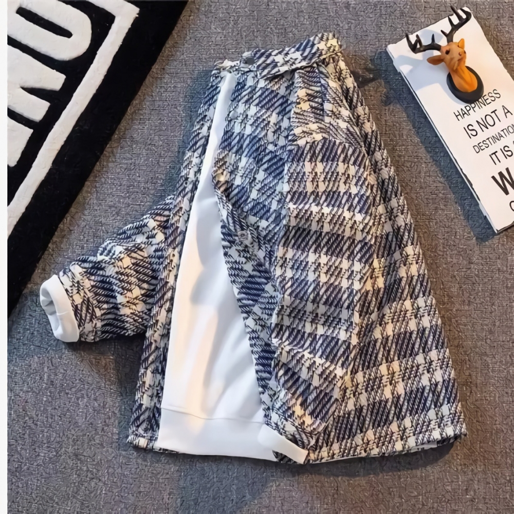 남성 샤무드 모직 코트 루즈핏 고급 체크 셔츠 자켓