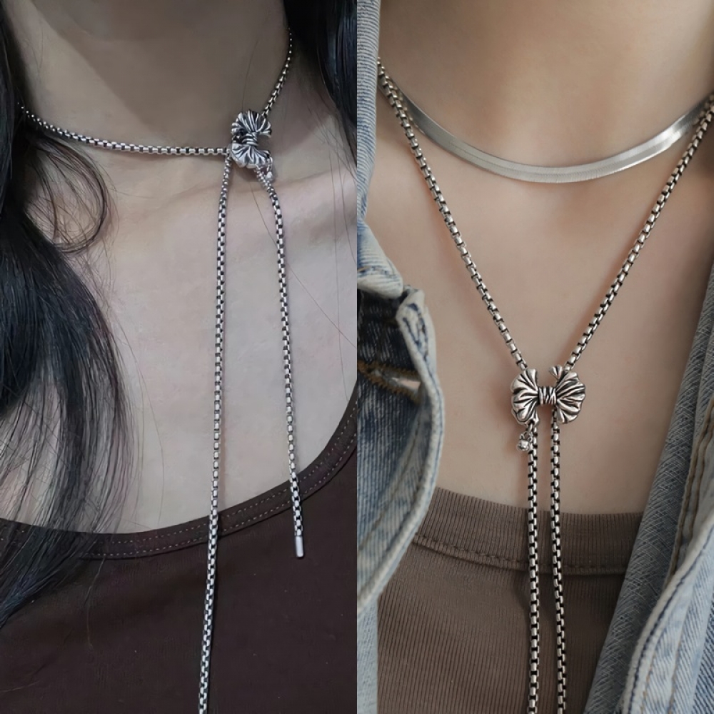 여성 s925 실버 빈티지 리본 팔찌 니트 목걸이