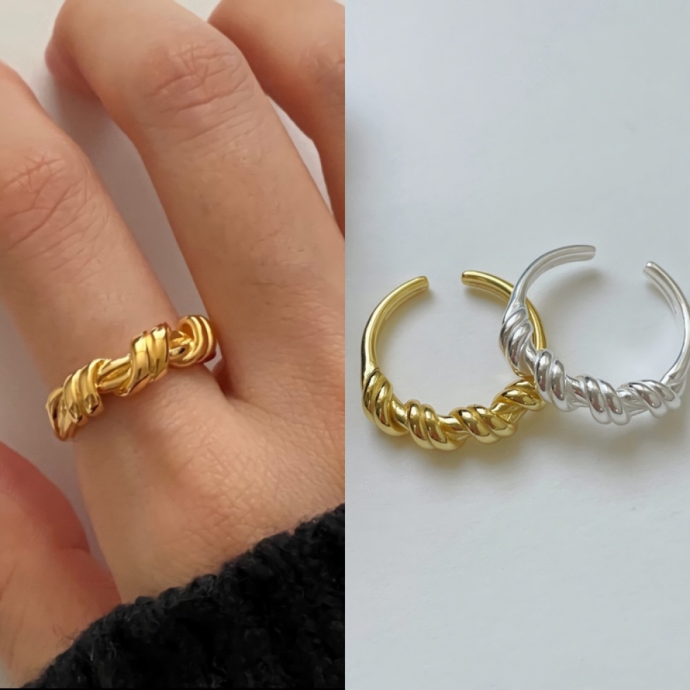 여성 s925 실버 골드 매듭 프렌치 오픈 링 반지