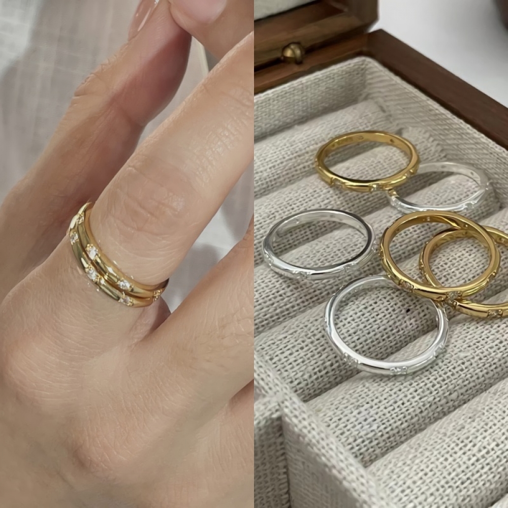 여성 s925 실버 골드 큐빅 레이어드 심플 반지