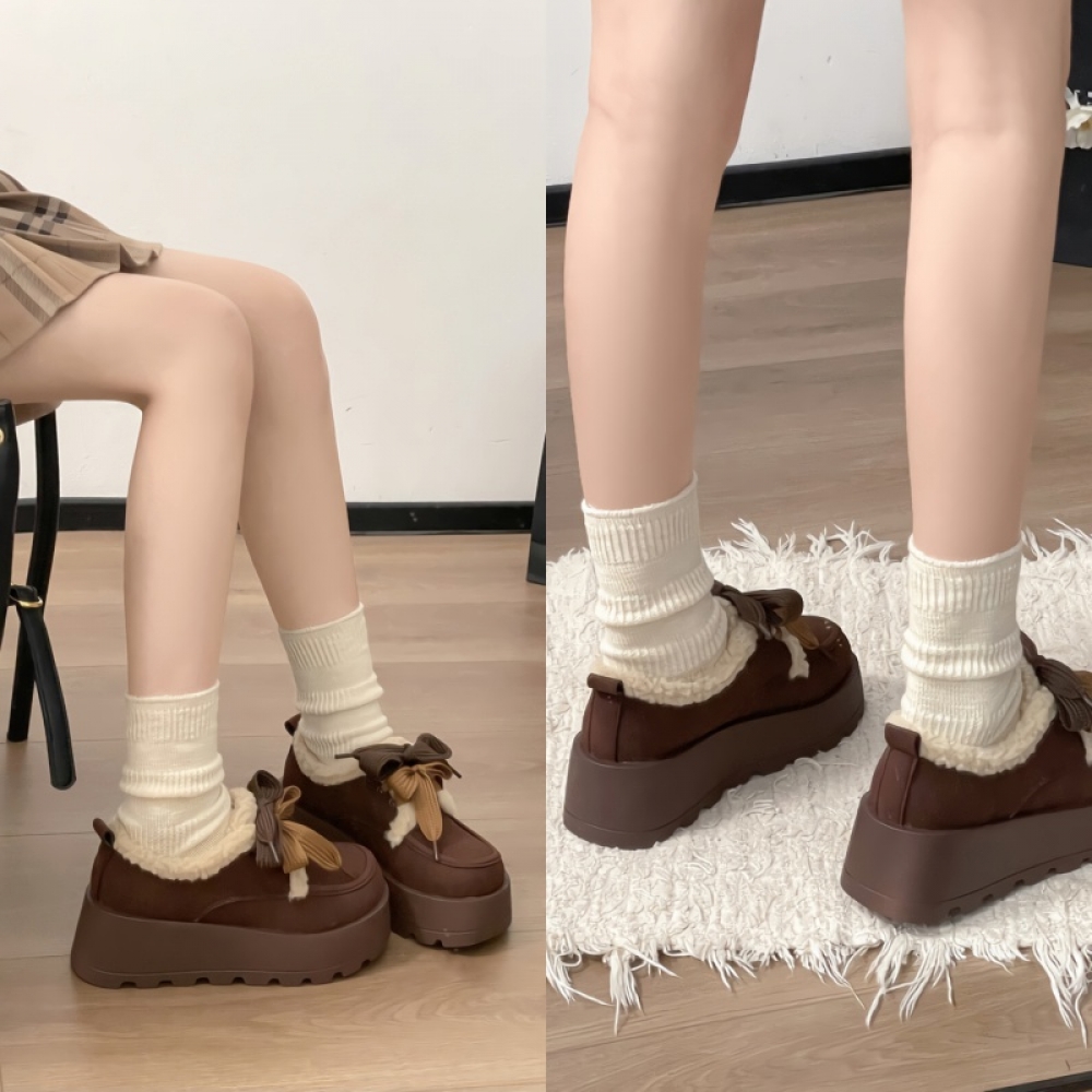 여성 겨울 양털 통굽 플랫 뽀글이 털 부츠 로퍼