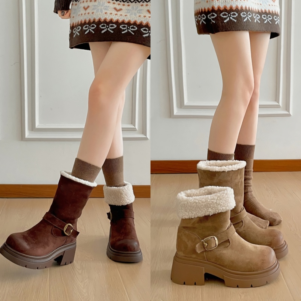 여성 겨울 2color 기모 뽀글 털 통굽 미들 부츠