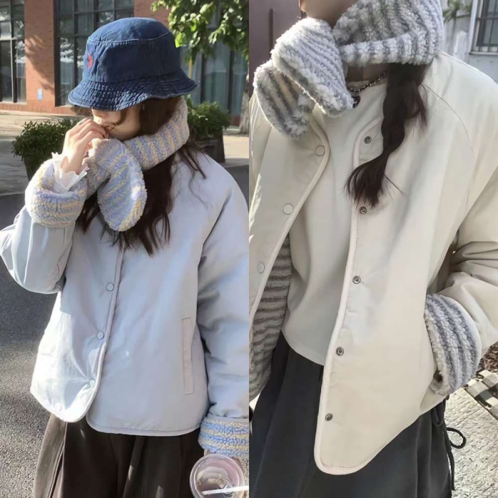 여성 겨울 2color 뽀글 스트라이프 숏 패딩 점퍼