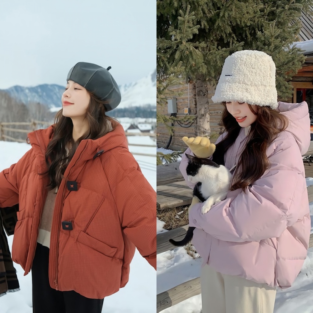 여성 겨울 4color 루즈핏 후드 더블버튼 숏 패딩