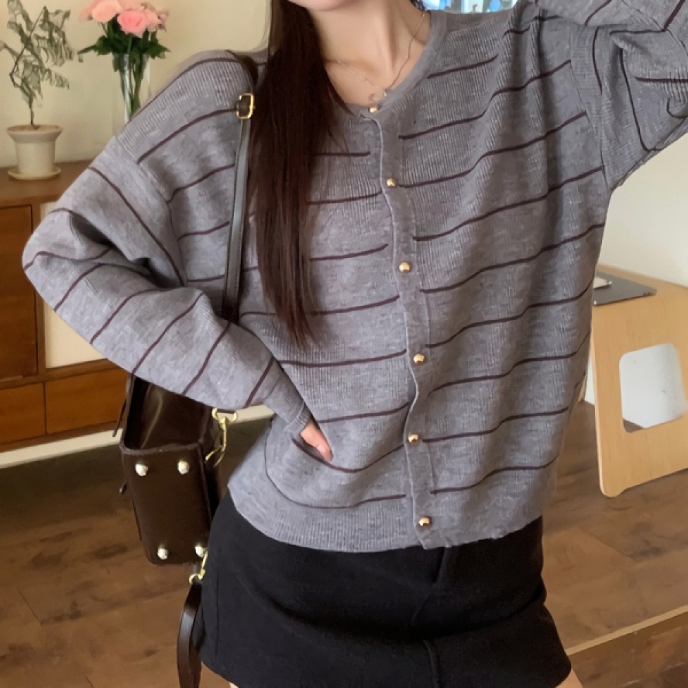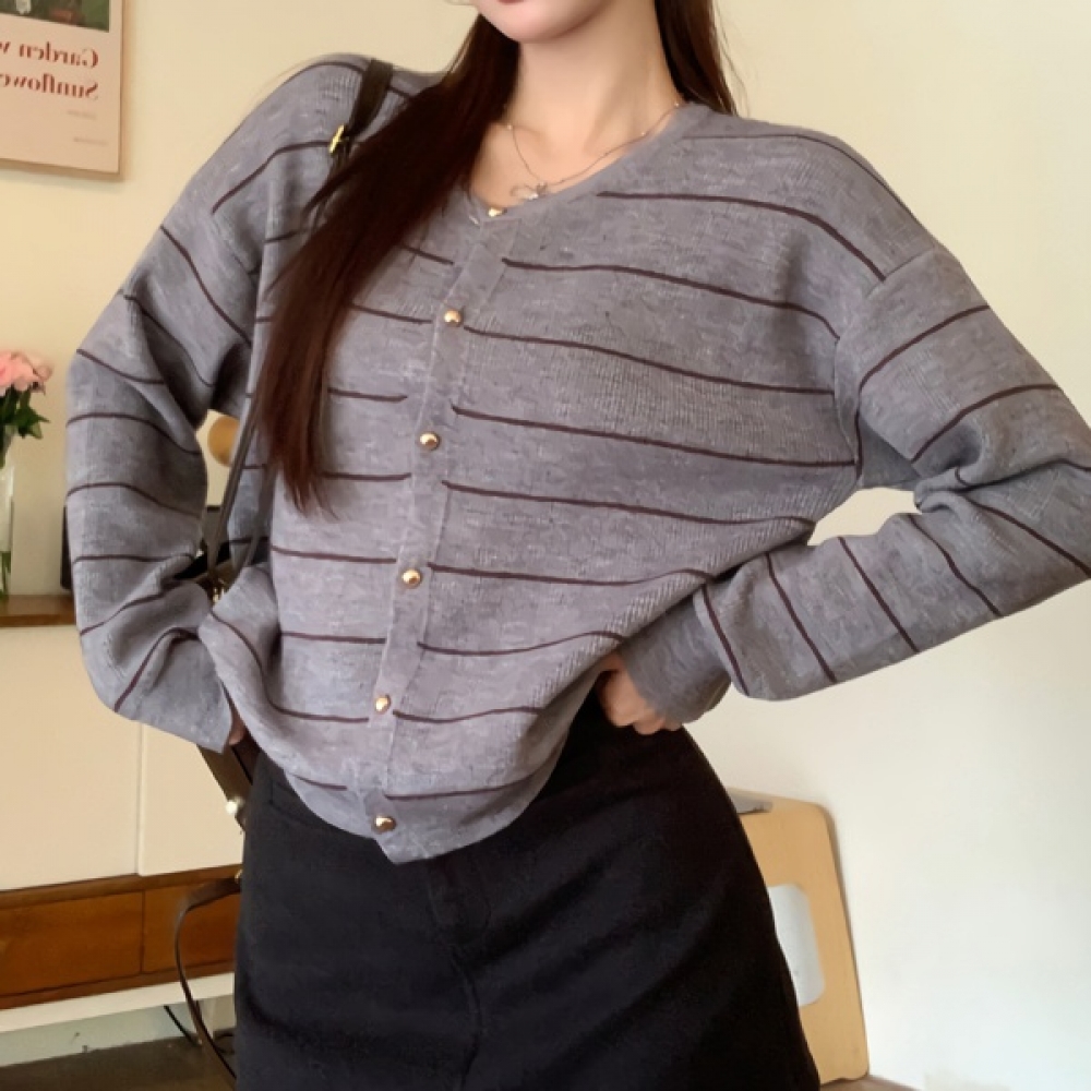여성 겨울 데일리 라운드 스트라이프 가디건
