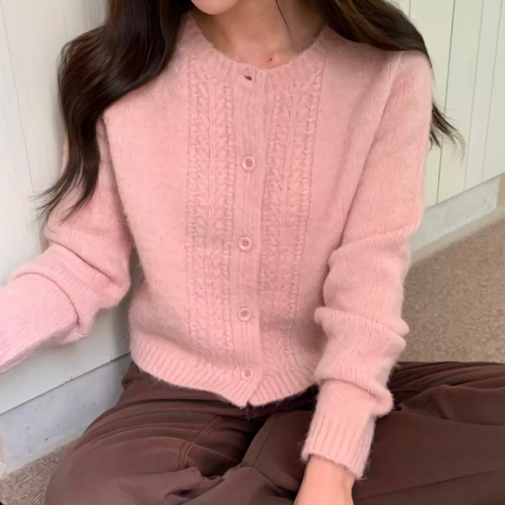 여성 겨울 데일리 꽈배기 라운드넥 울 가디건