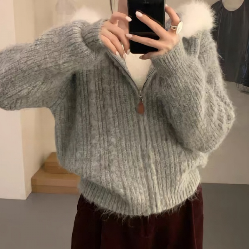 여성 겨울 데일리 포켓 집업 니트 가디건