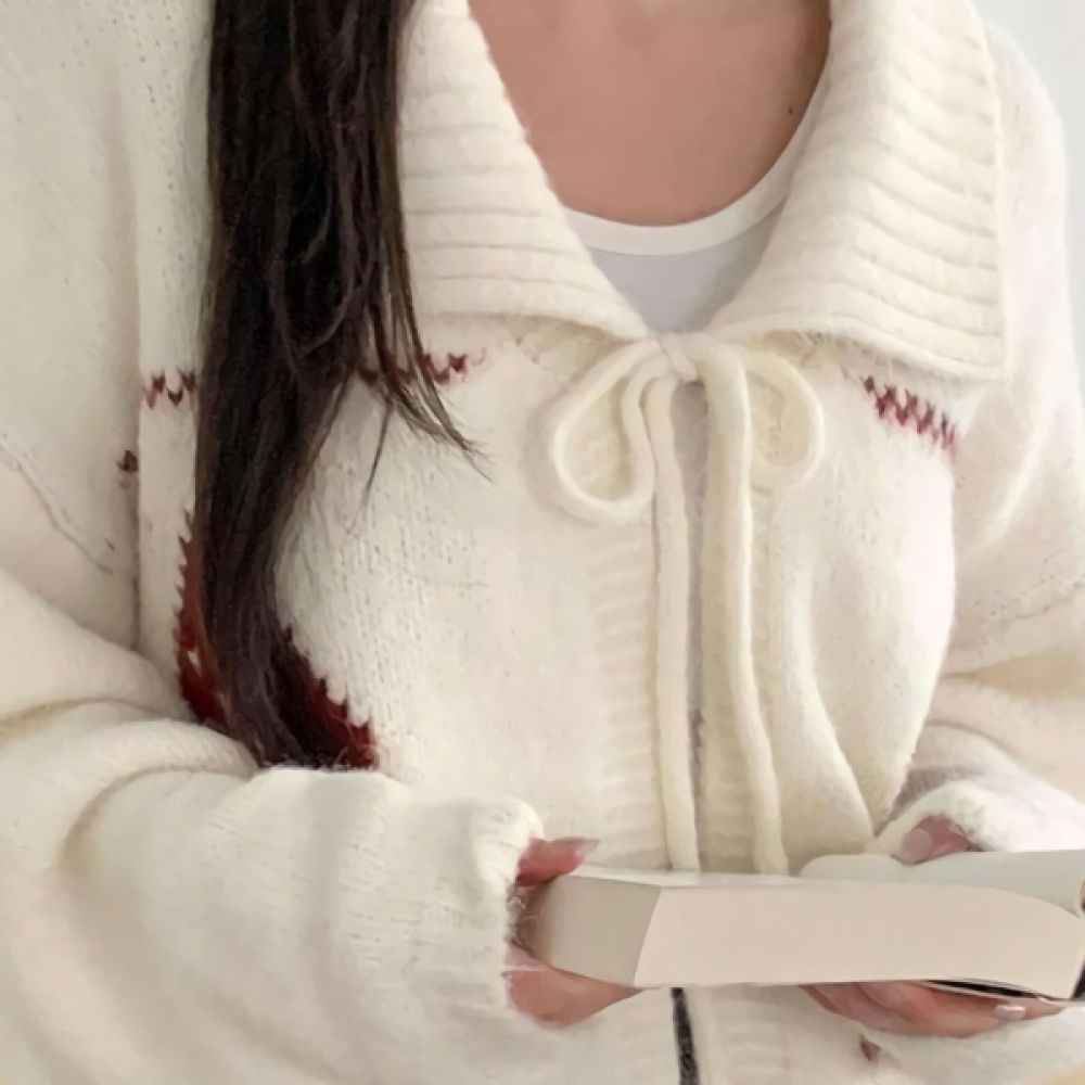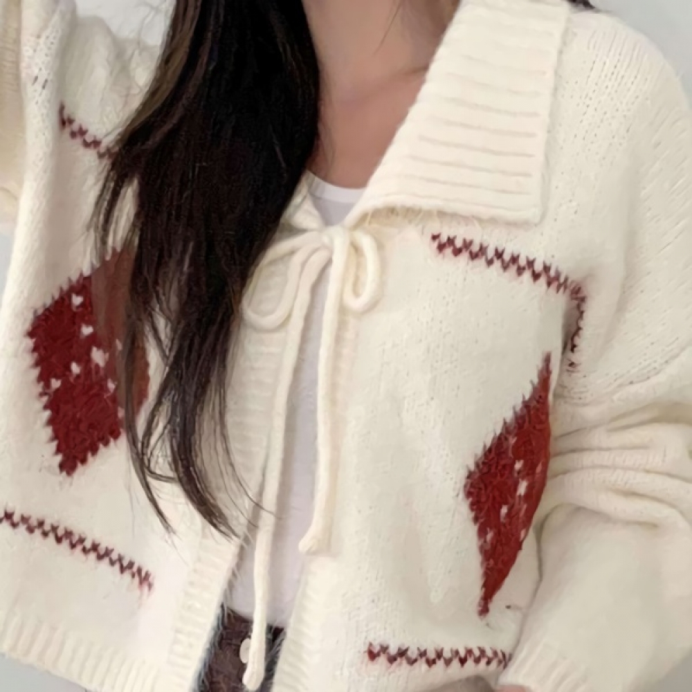 여성 빅카라 아가일 오버핏 니트 가디건