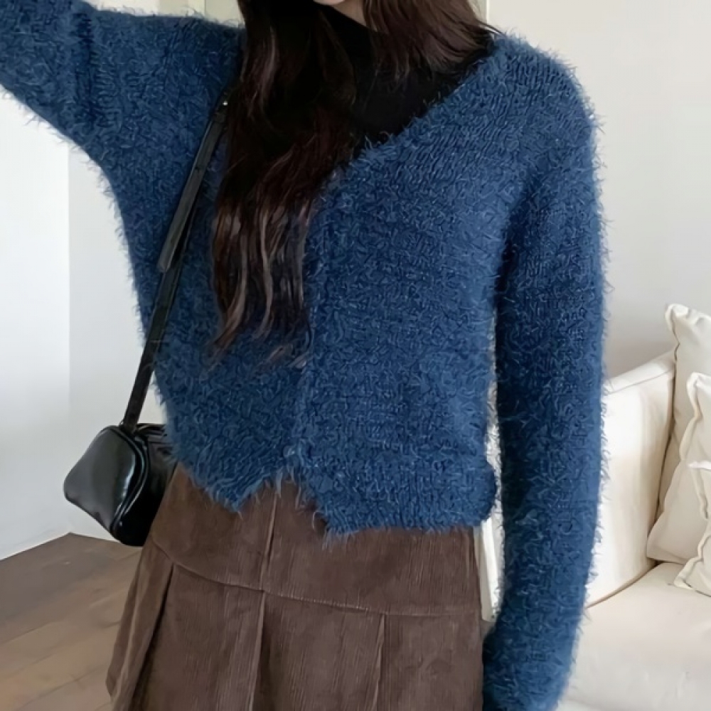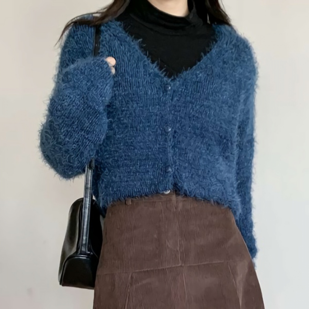 여성 겨울 데일리 포켓 집업 니트 가디건
