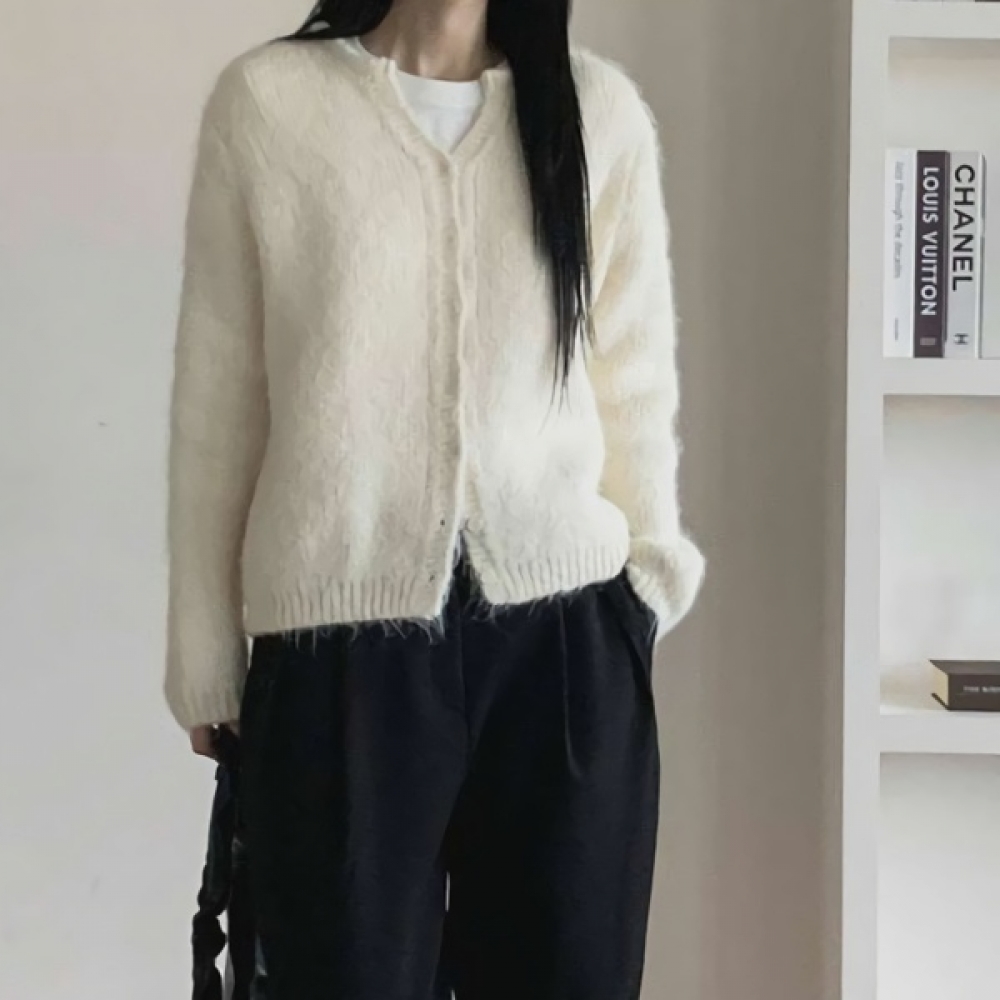 여성 겨울 트임넥 포근 울 니트 가디건