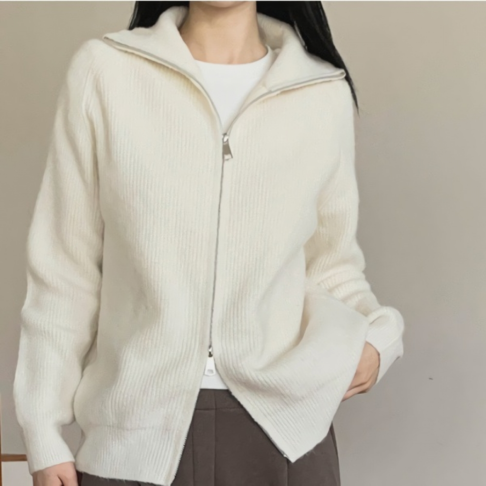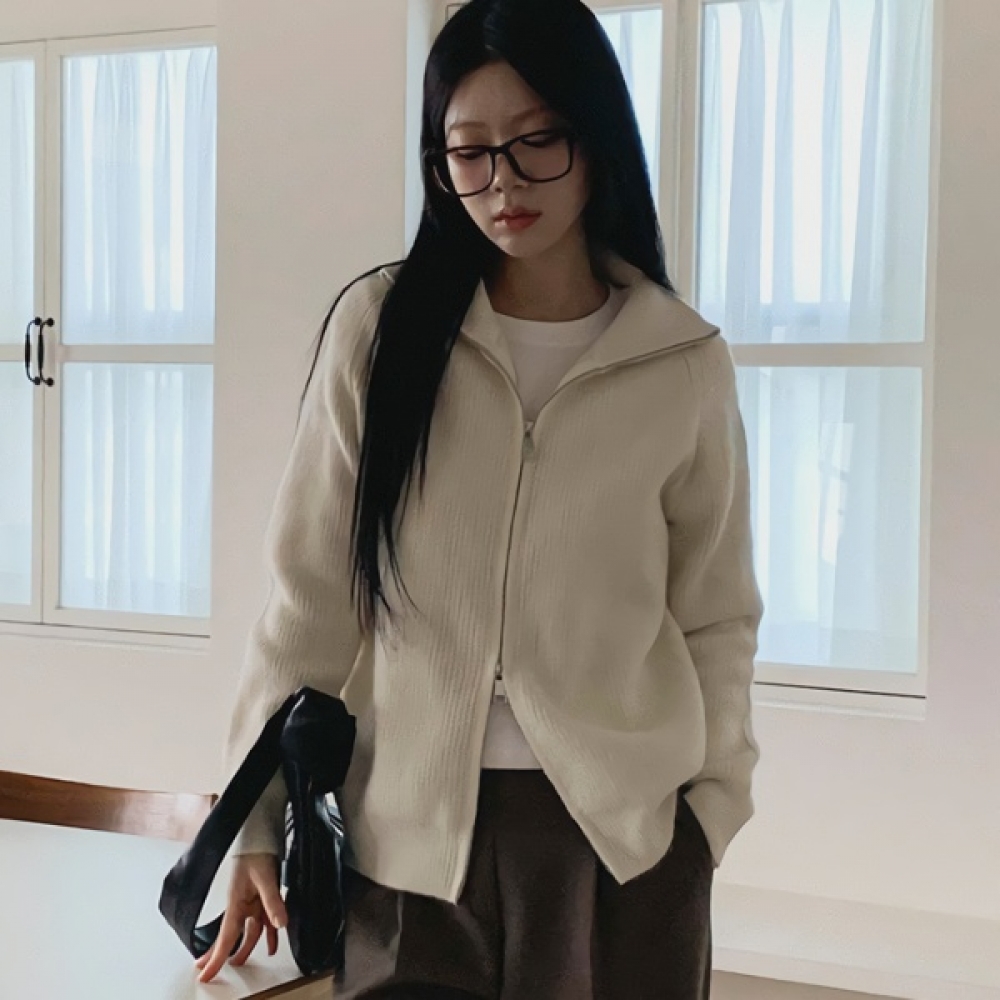 여성 하이넥 오버핏 니트 집업 가디건