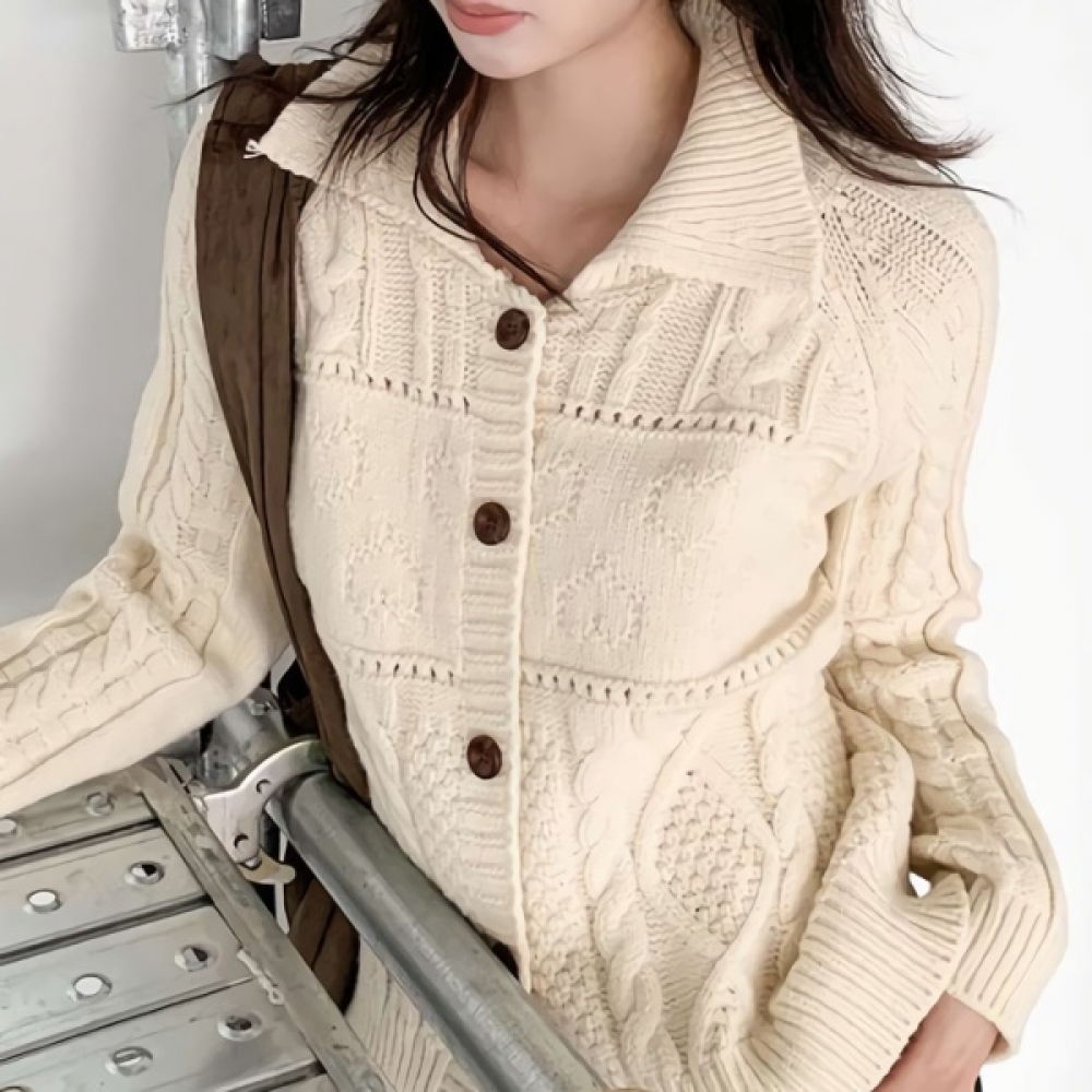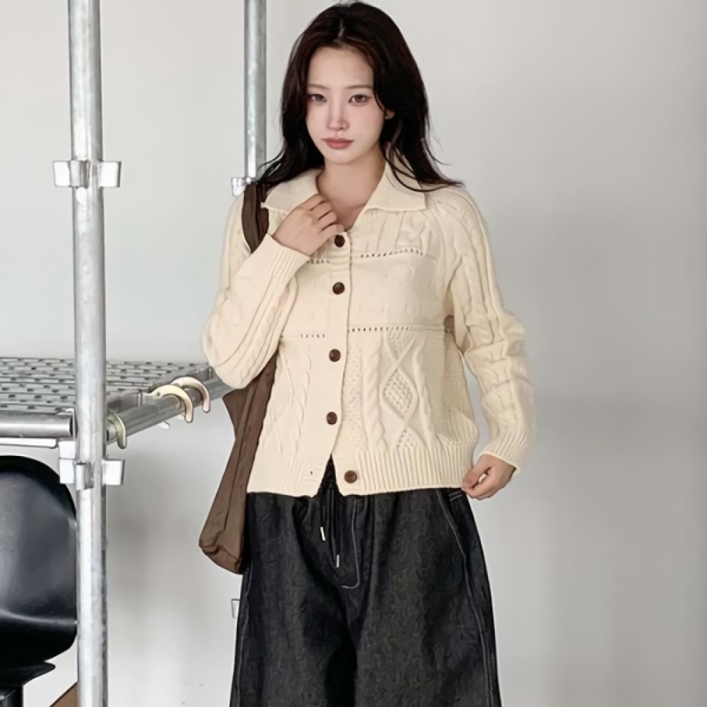 여성 겨울 꽈배기 카라넥 오픈 가디건