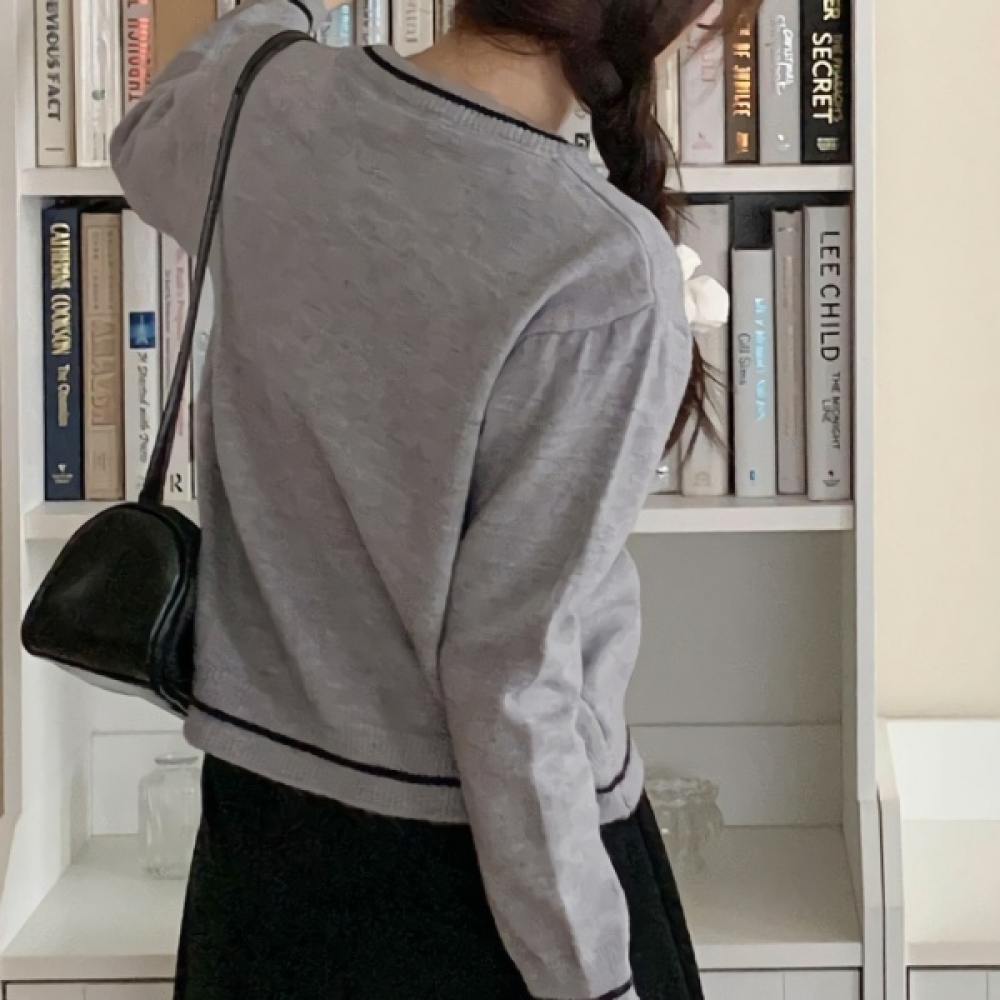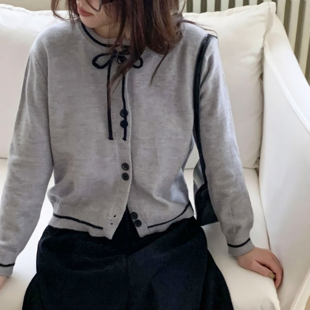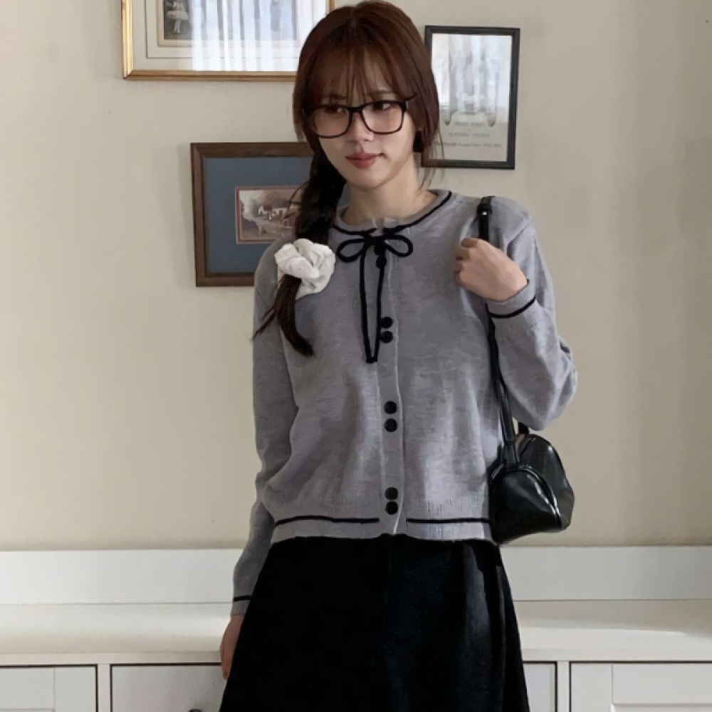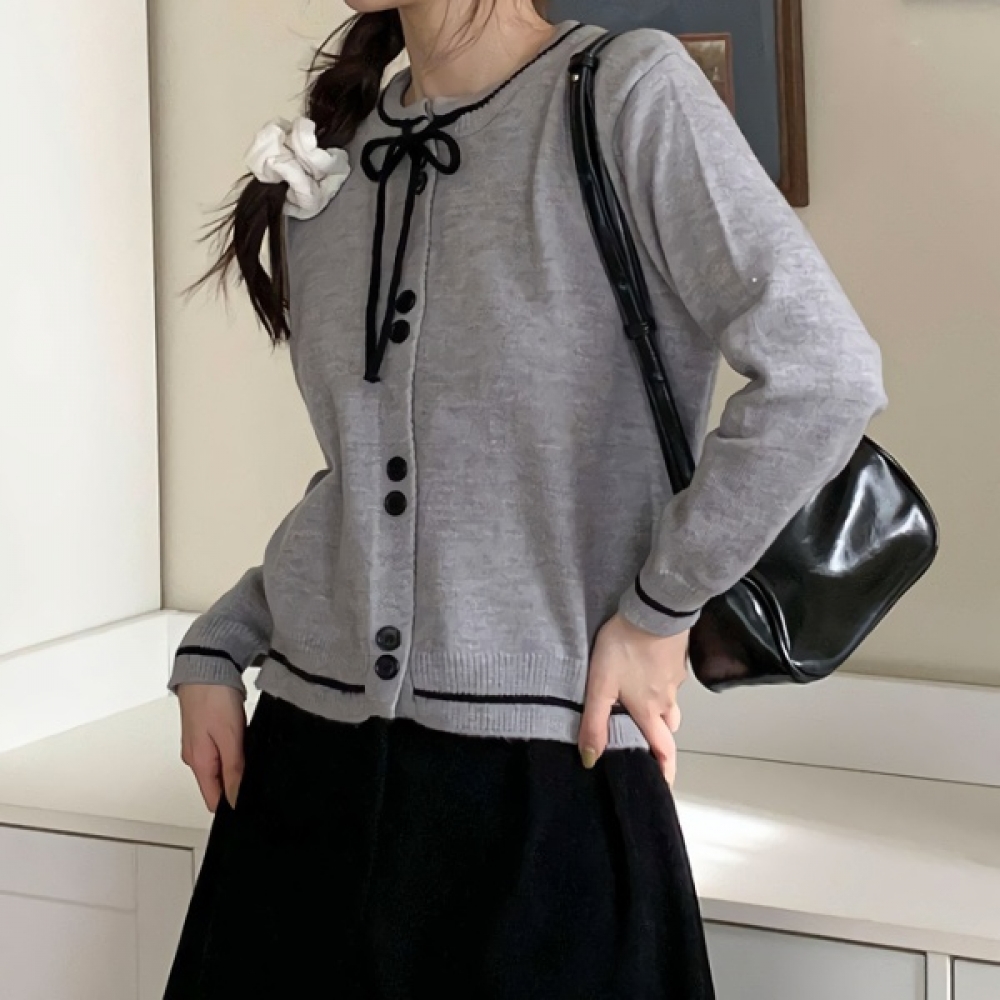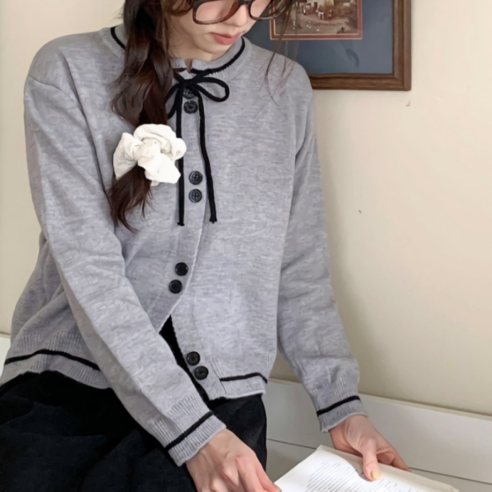 여성 겨울 리본 투버튼 니트 가디건