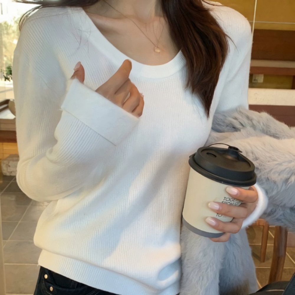 여성 겨울 데일리 융기모 골지 니트