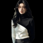 블랙앤화이트 배색 폴라 니트 긴팔티
