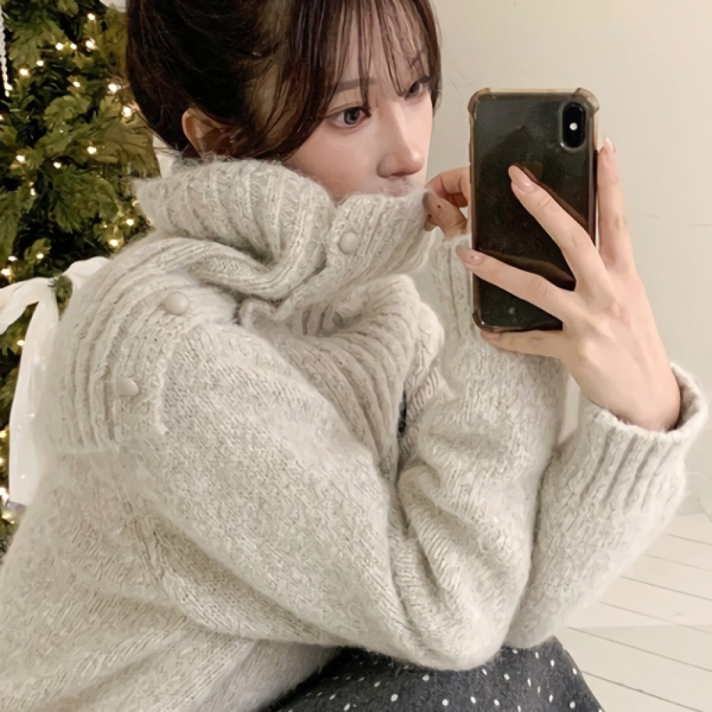 여성 겨울 데일리 앙고라 카라넥 버튼 니트