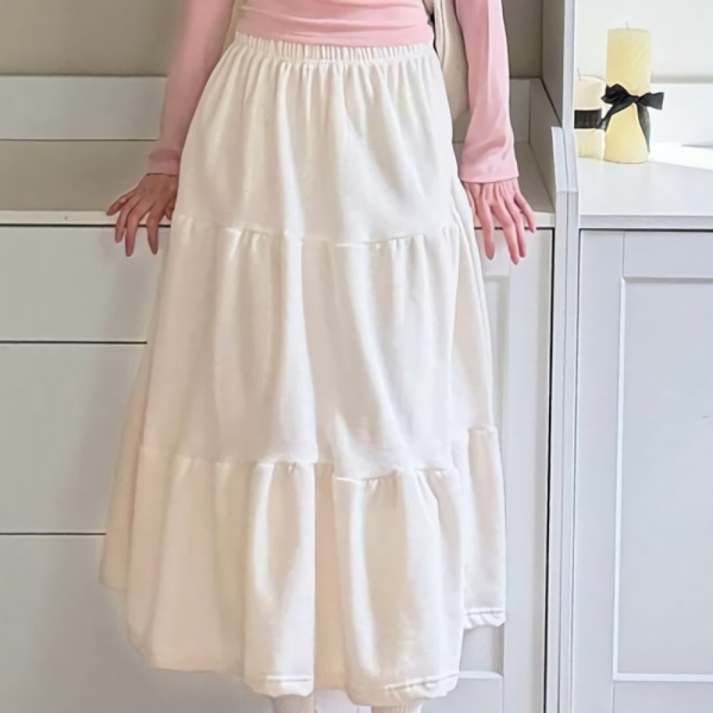 여성 기모 밴딩 캉캉 플레어 롱스커트