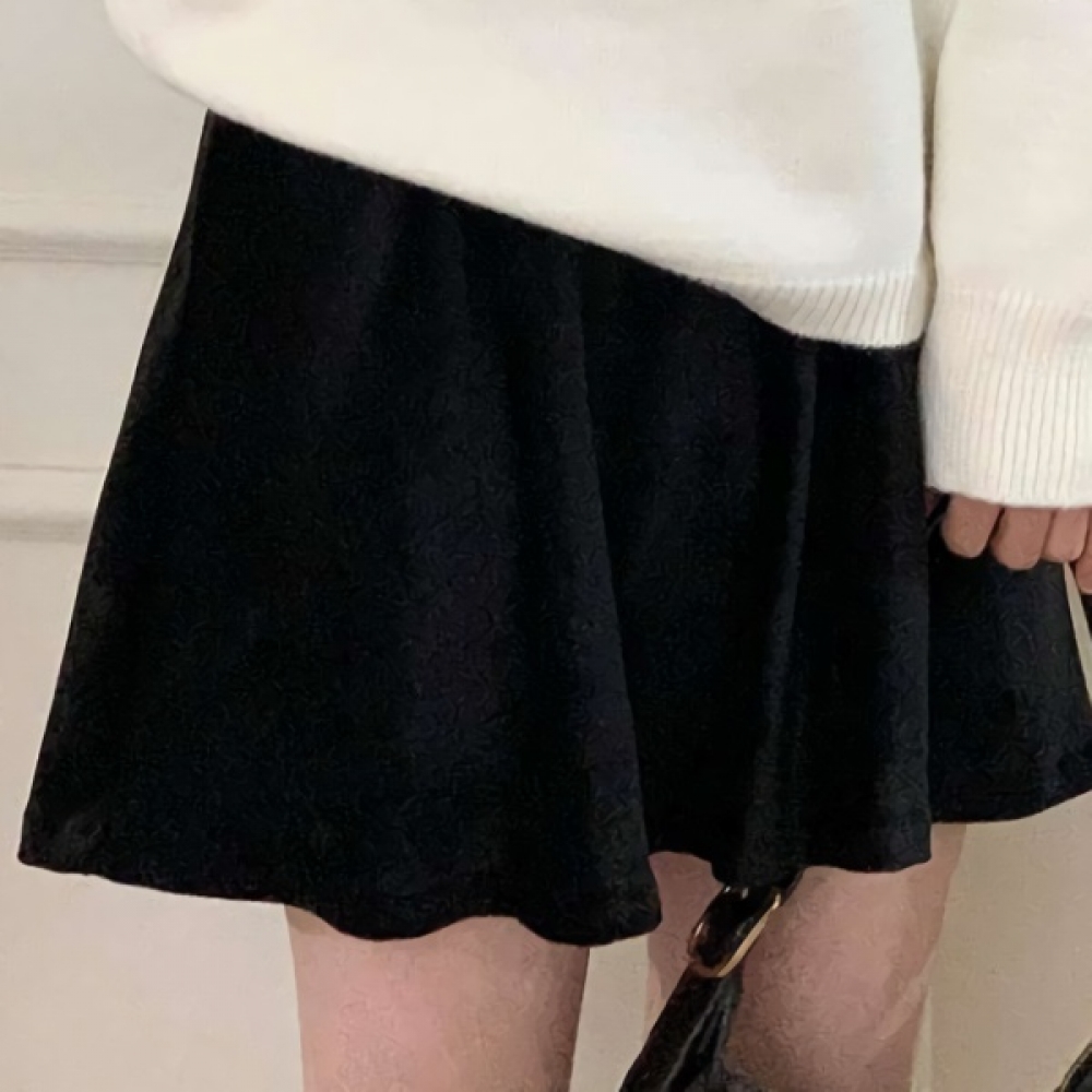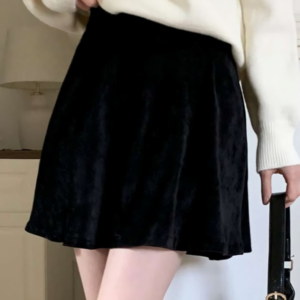 여성 겨울 벨벳 플레어 밴딩 미니스커트