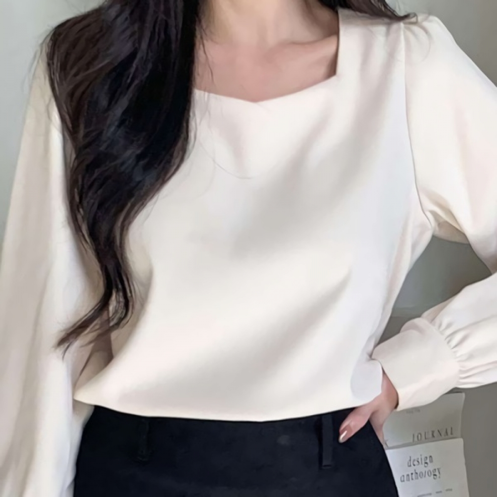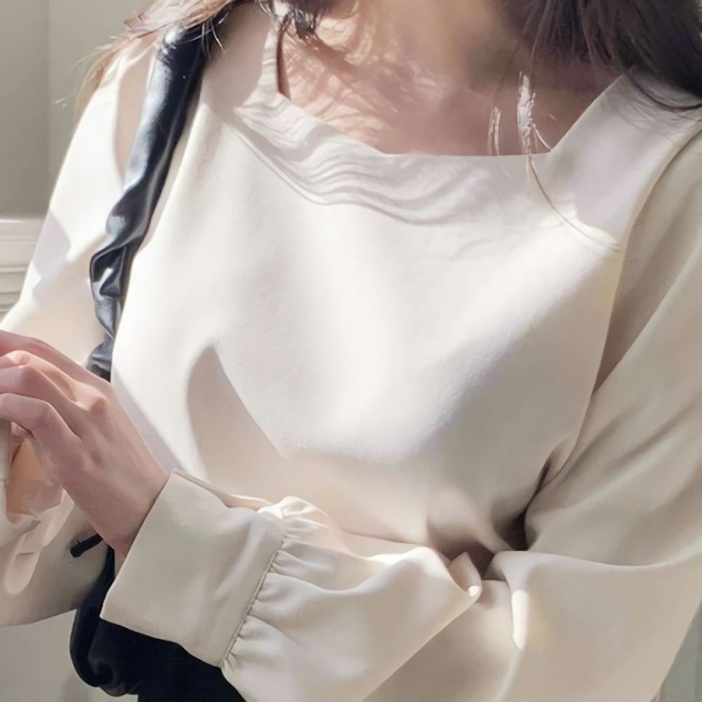 여성 겨울 페미닌 긴팔 스퀘어넥 블라우스