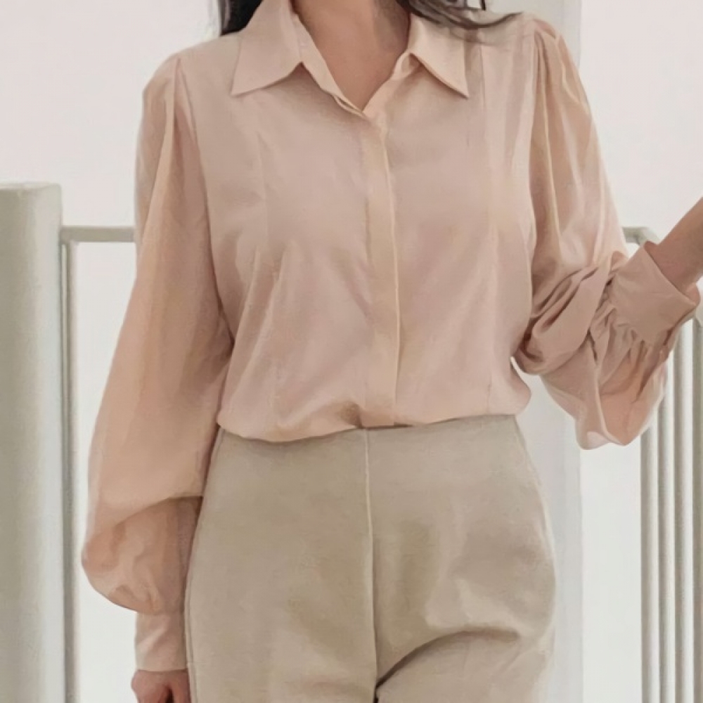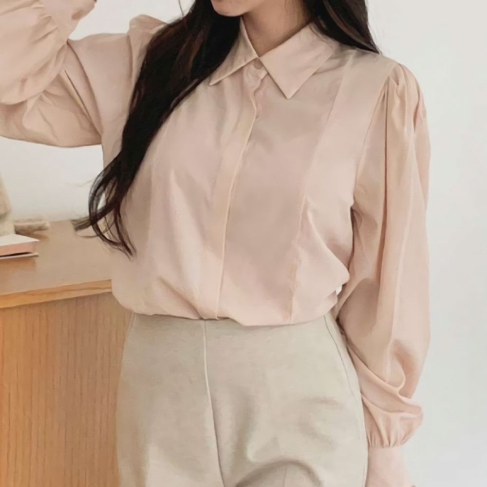 여성 겨울 데일리 퍼프 쉬폰블라우스