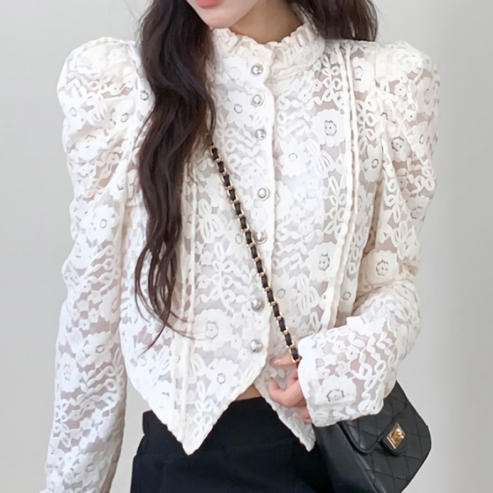 여성 겨울 프릴 레이스 여리핏 블라우스