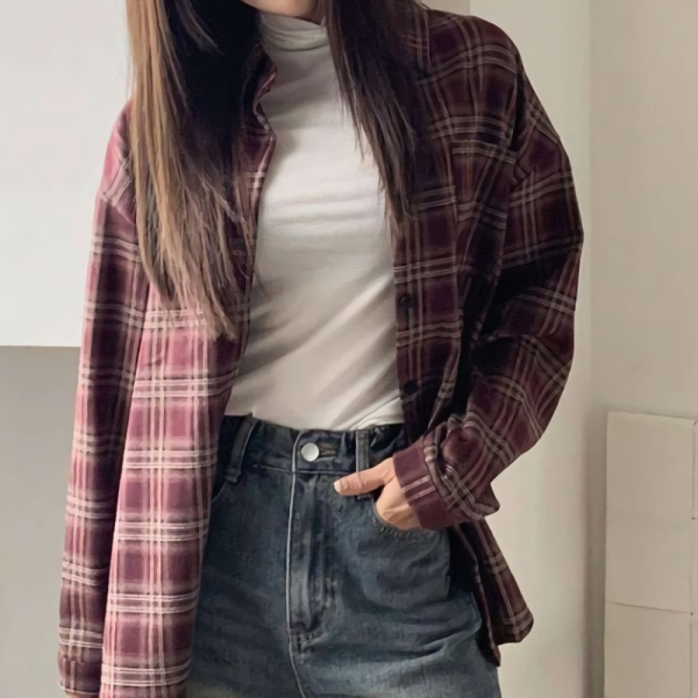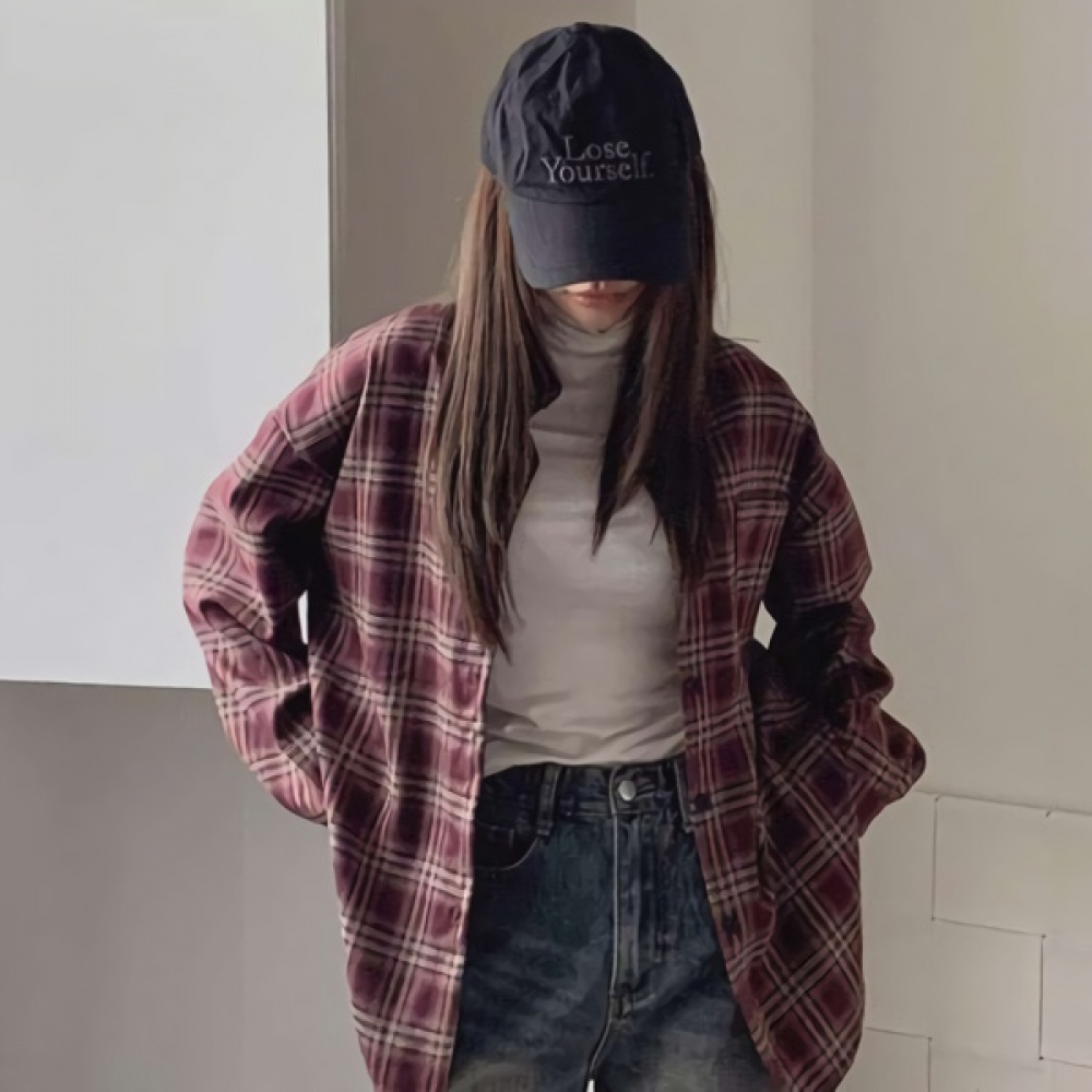 여성 원 포켓 도톰 루즈핏 체크 셔츠