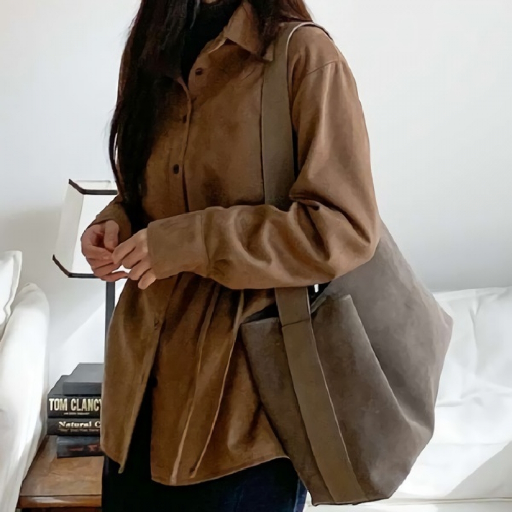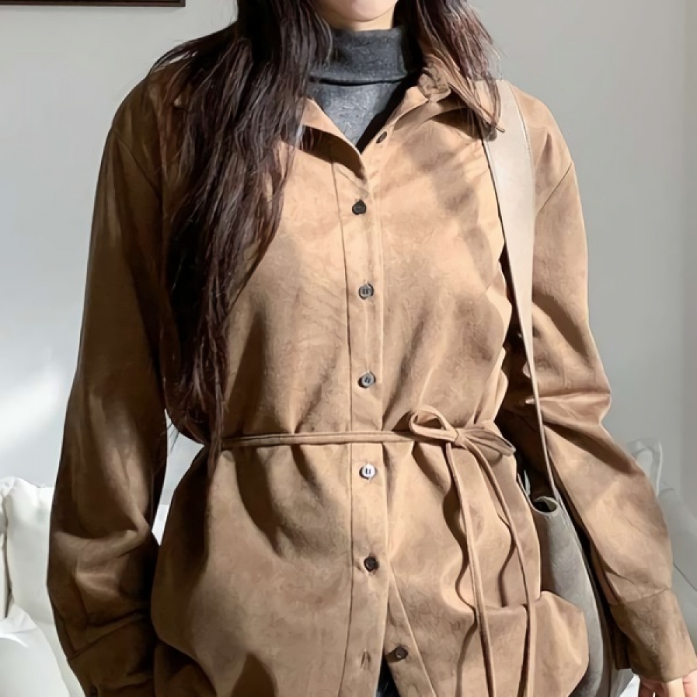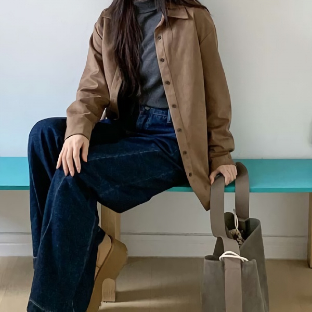 여성 겨울 오버핏 하이넥 스웨이드 셔츠