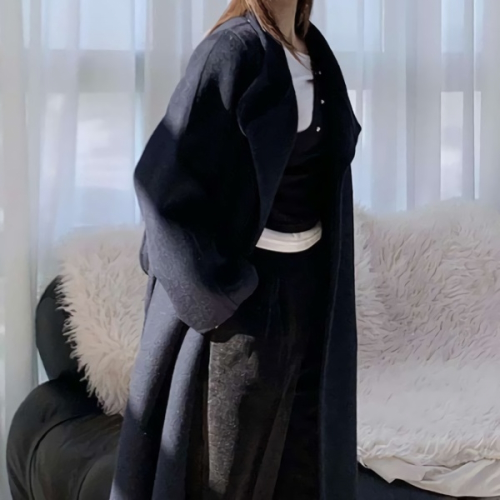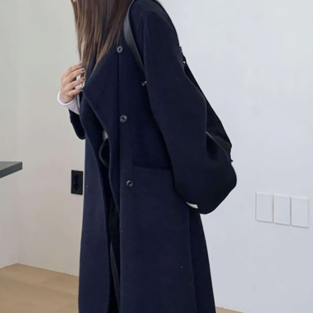 여성 핸드메이드 하이넥 오버핏 스냅 울 코트