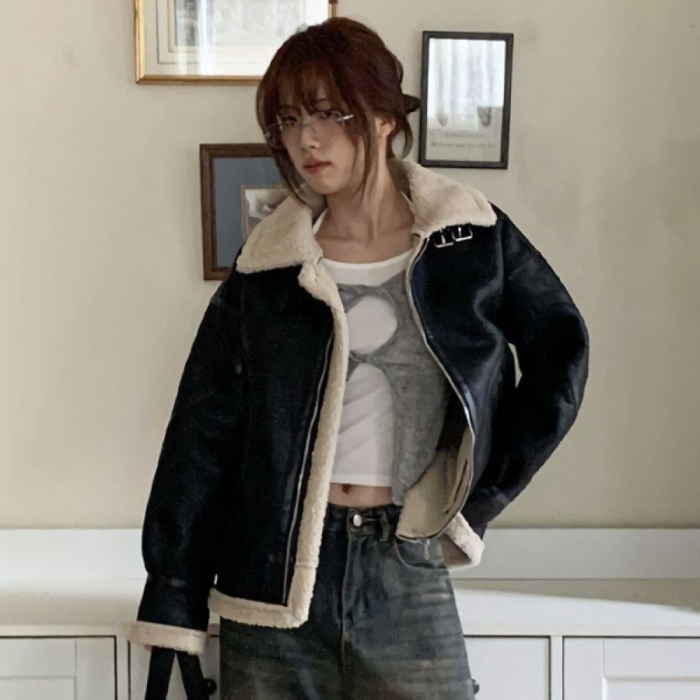 여성 겨울 스웨이드 루즈핏 무스탕 자켓