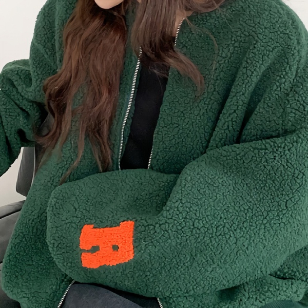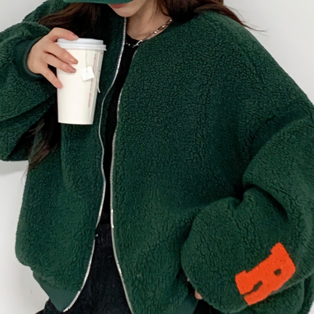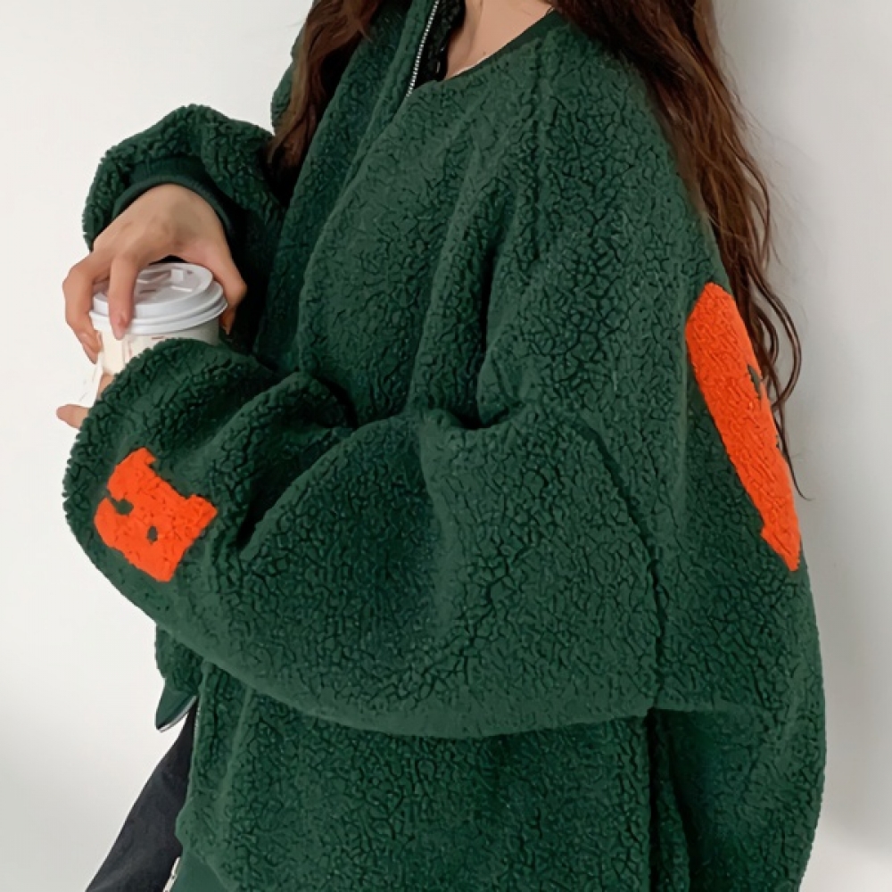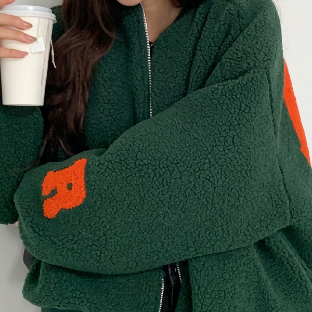 여성 겨울 배색 오버핏 덤블 집업 자켓