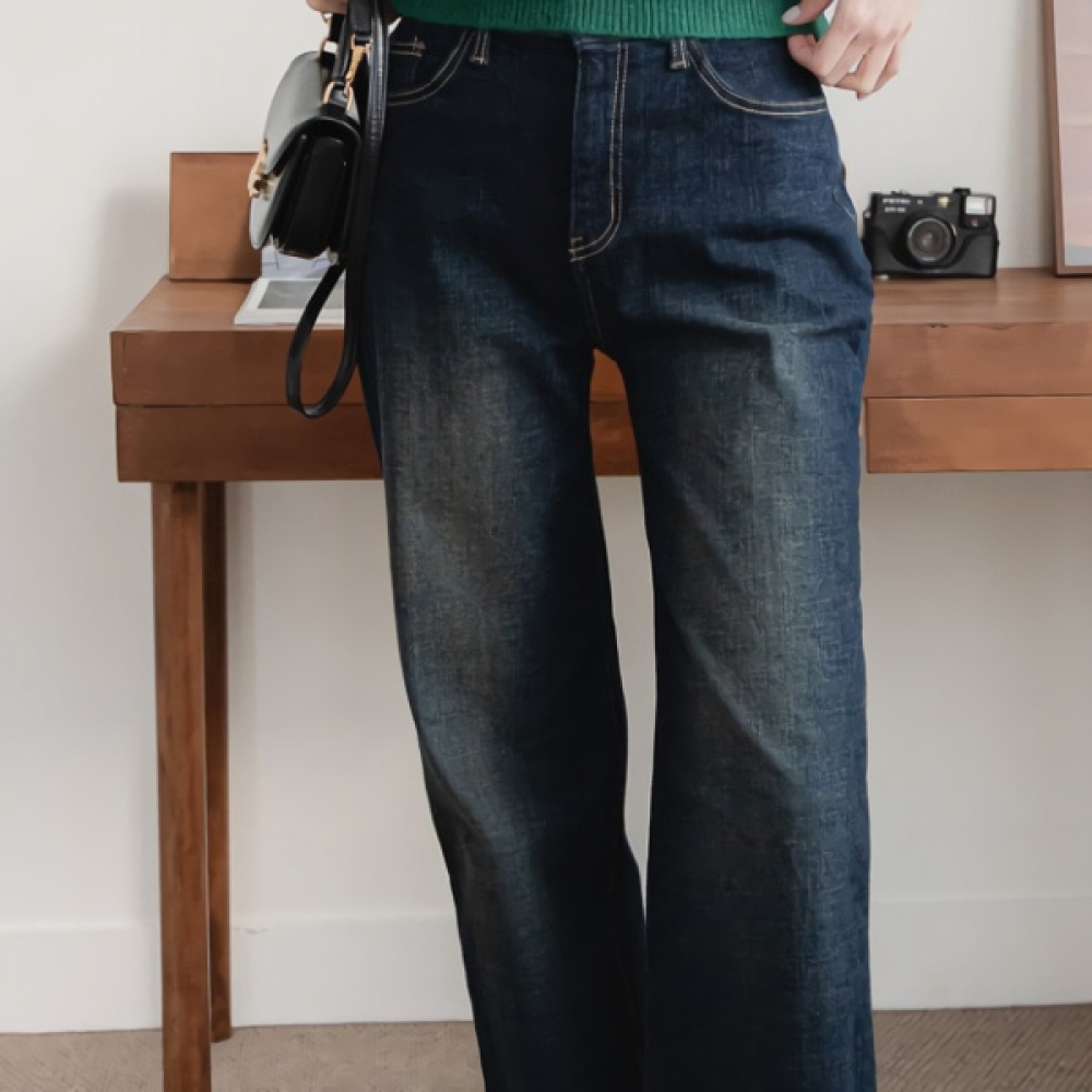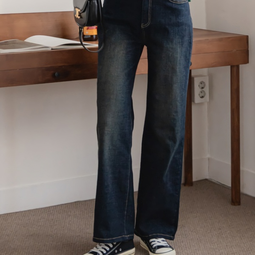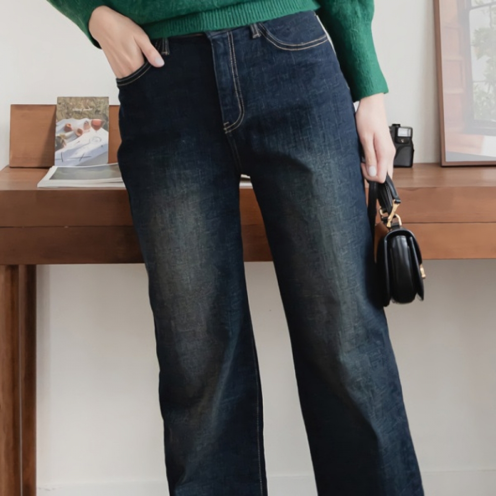 여성 논페이드 커브드 와이드 기모 데님 팬츠